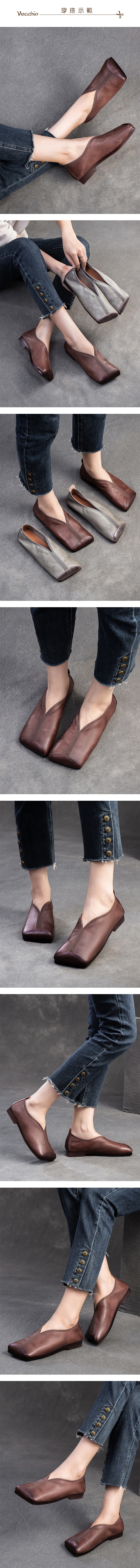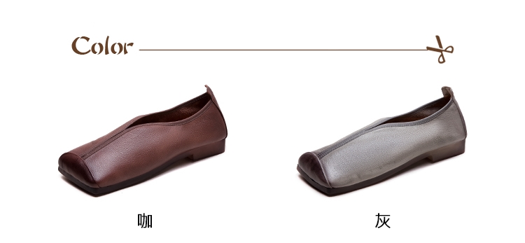 【VECCHIO】全真皮方頭V口低跟便鞋/全真皮頭層牛皮復古方頭V口低跟便鞋 女鞋 咖