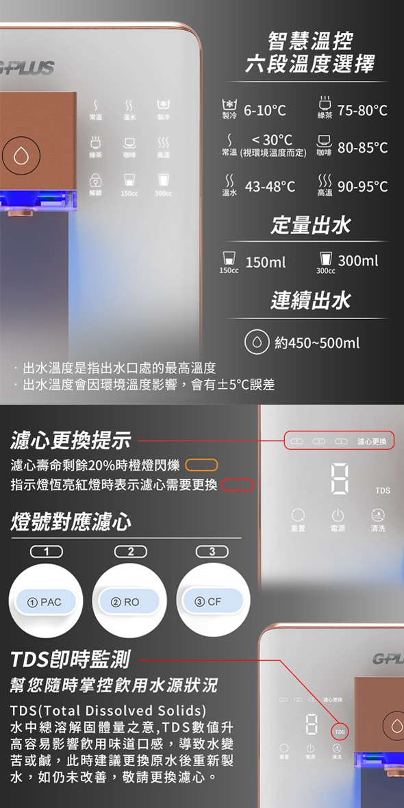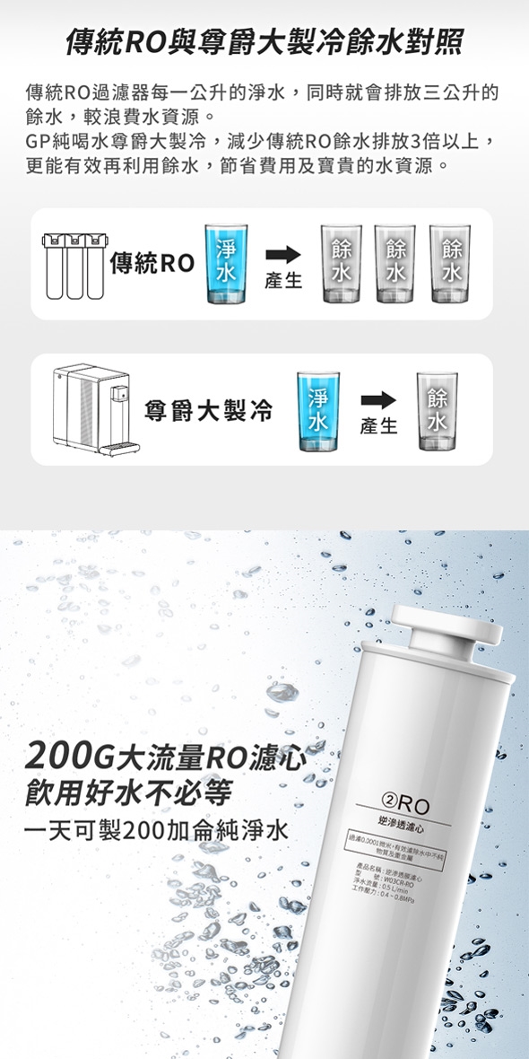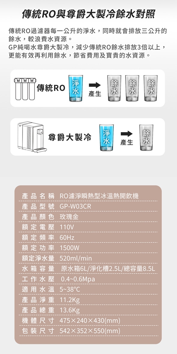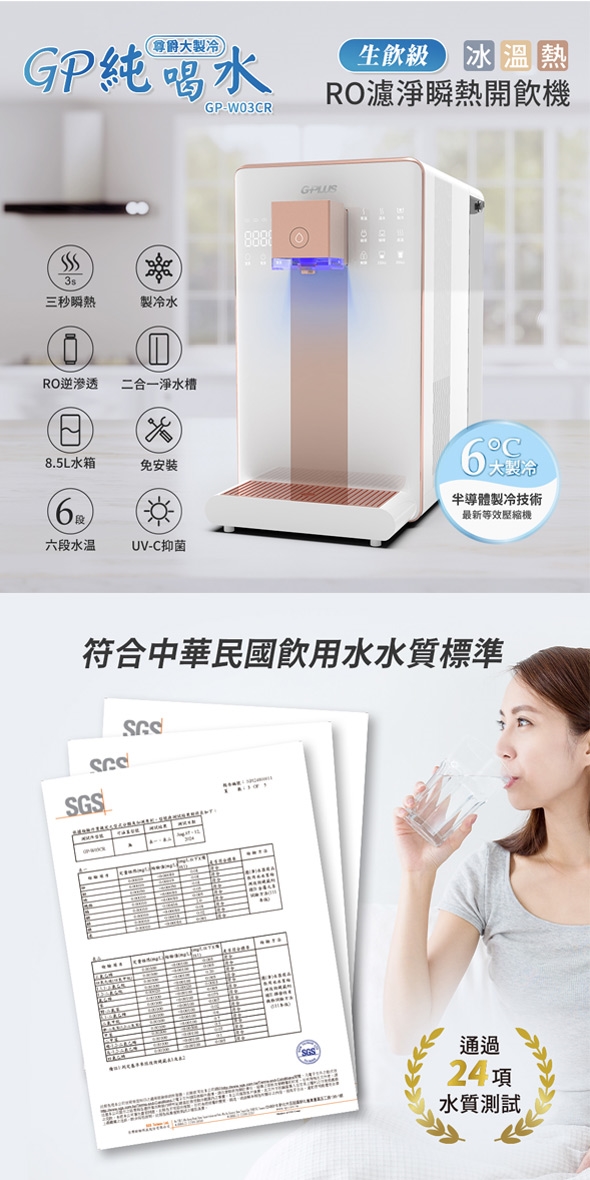 【G-PLUS 拓勤】GP純喝水-RO濾淨瞬熱開飲機 尊爵大製冷 GP-W03CR 加贈PAC濾心*1+CF濾心*1