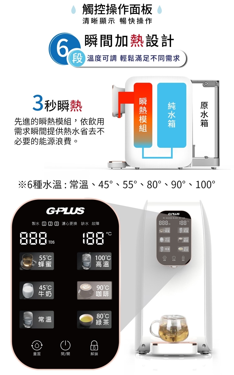 G-PLUS 拓勤 GP純喝水-RO移動式瞬熱開飲機+另外贈送PAC+CF+RO濾心組(附SGS多項水質檢測證明)