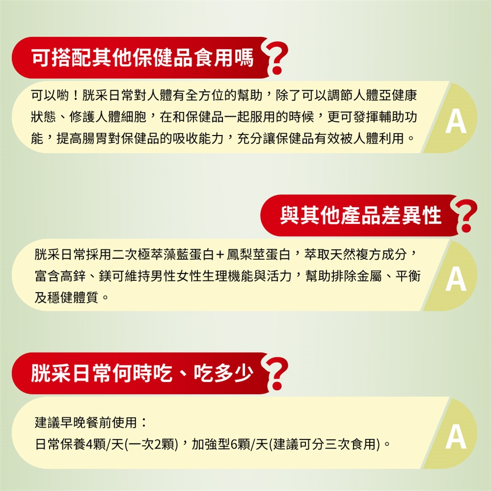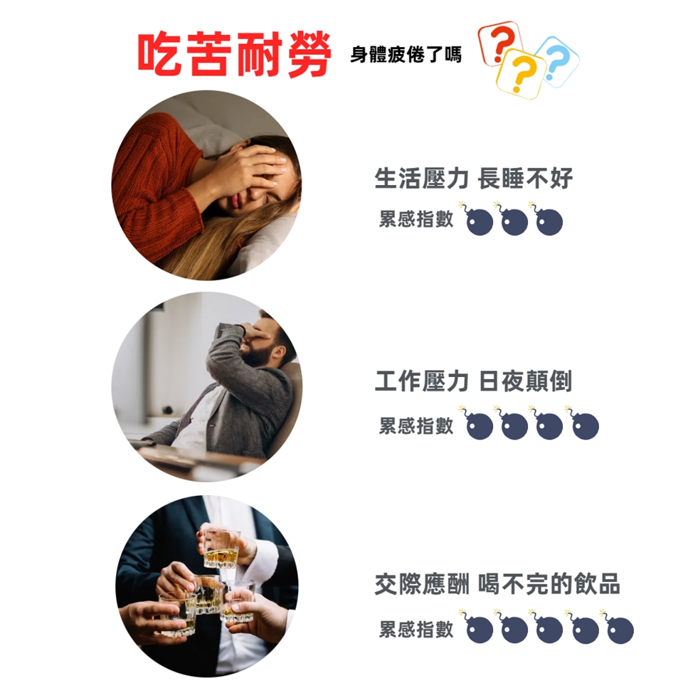 注意事項 : 飲酒無安全量,建議勿用過多酒精,如無法避免,請搭配胱采日常,以減輕肝臟和身體負擔。