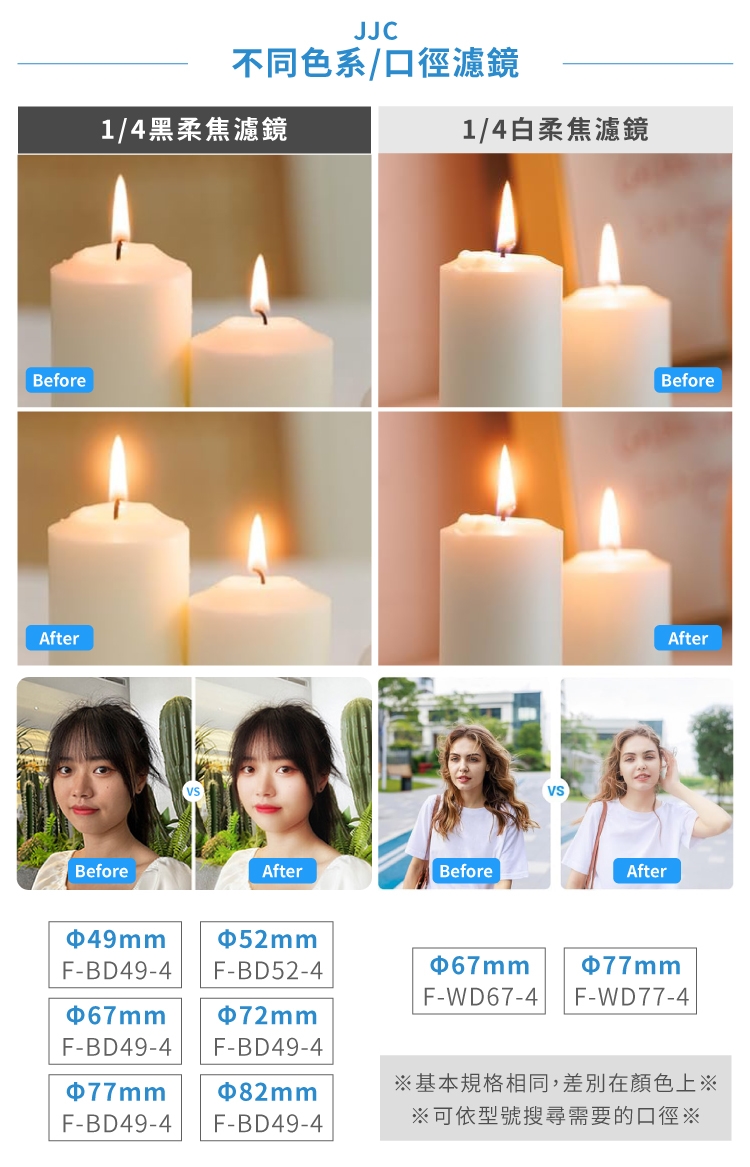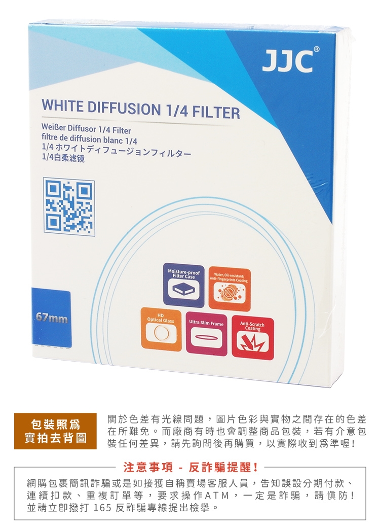 ●【品名】JJC朦朧浪漫感1/4霧化白柔焦多層膜67mm白霧柔濾鏡F-WD67-4(附防潮收納盒;薄框)光暈特效電影復古質感濾鏡