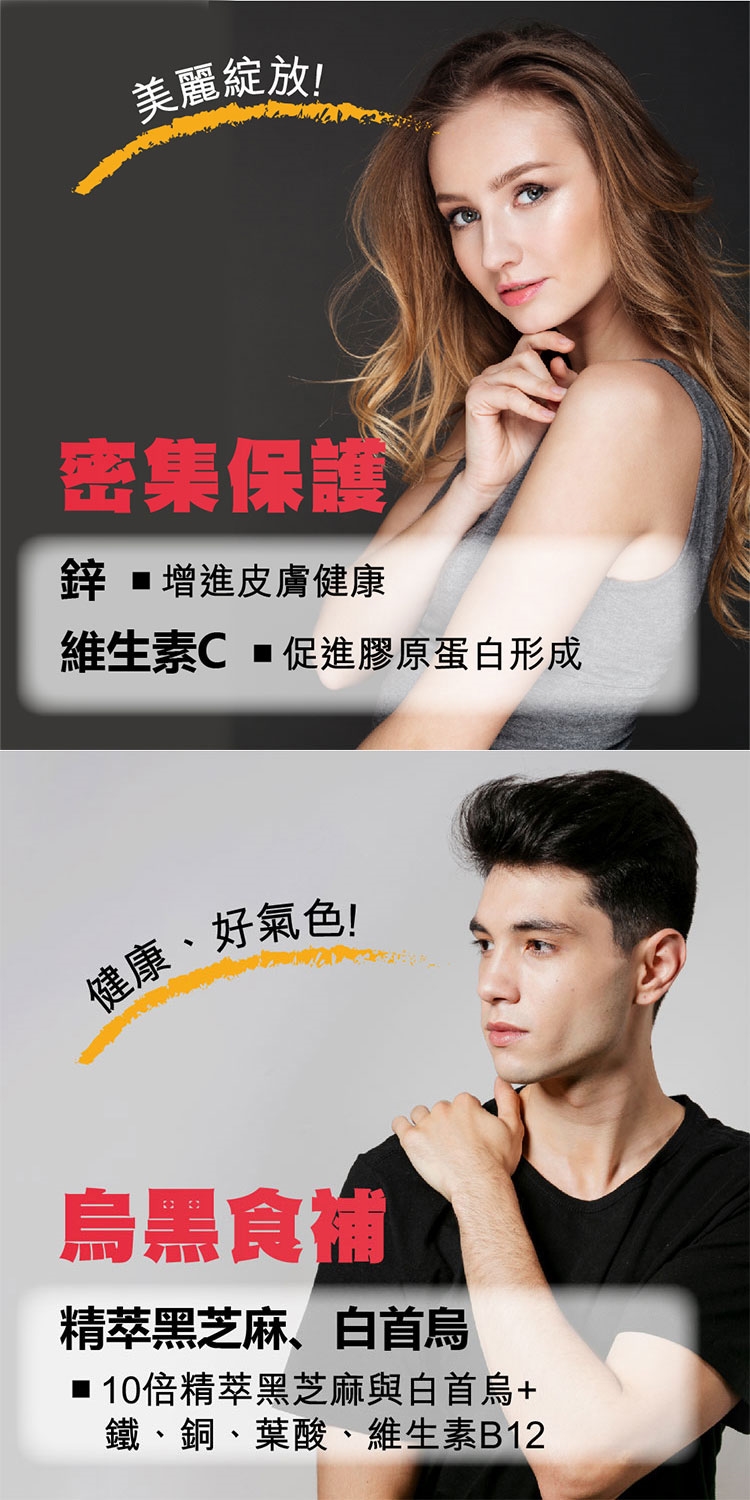 ◆ 密集保護:鋅可增進皮膚健康,維生素C可促進膠原蛋白形成,維生素E具抗氧化作用。