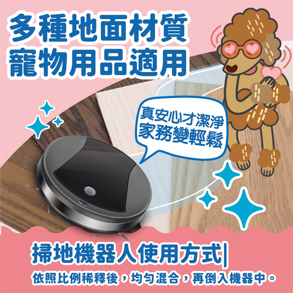 將適量清潔液加入清水中稀釋,即可使用
