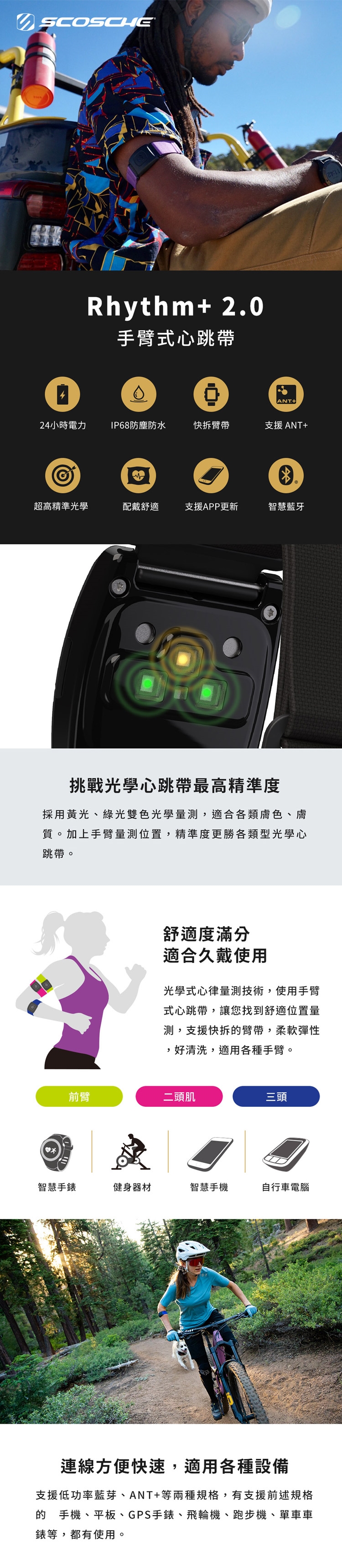 - 支援ANT+設備如GPS手錶、車錶