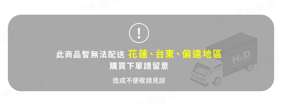 (1) 配送時間:大型家俱配送不易,配送時間約7至14個工作天(不含假日),送貨前物流公司將會與你確認送貨時間,星期日及國定假日皆無配送。