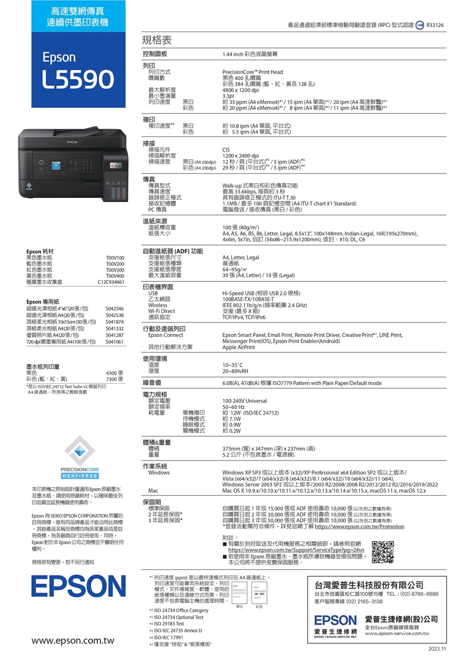 ※ 以上規格資料若有任何錯誤,以原廠所公佈資料為準