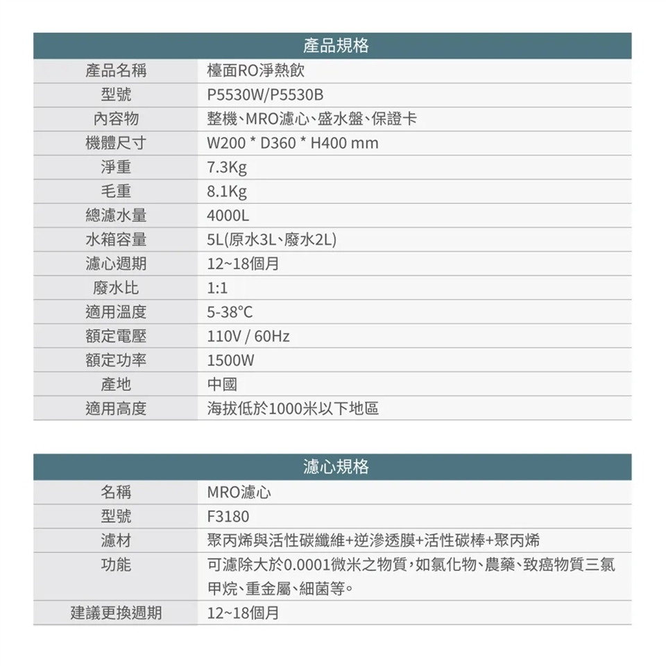 檯面RO淨熱飲P5530W **此品為DIY按裝,不附按裝服務**