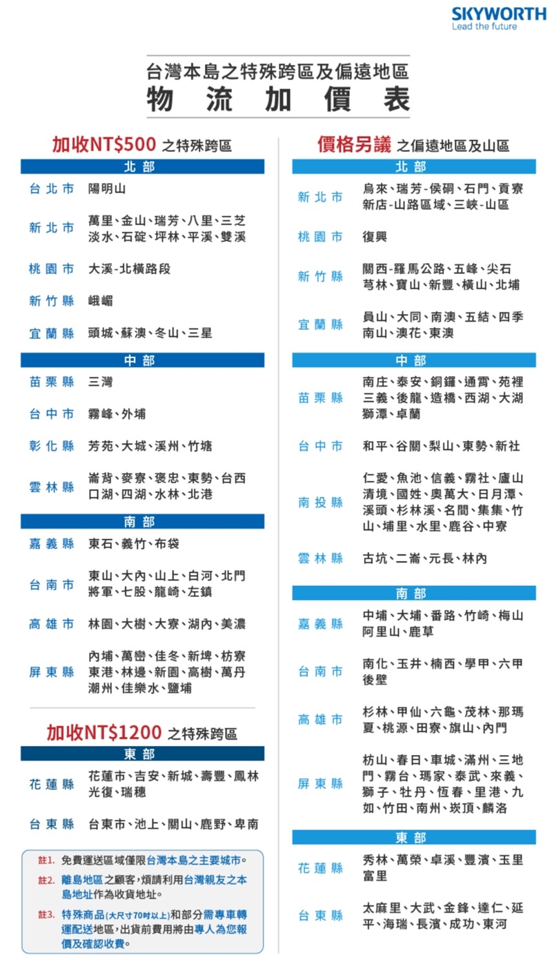 偏遠區恕無法一一列出, 待接單後會聯繫顧客,如需加費用會另外告知