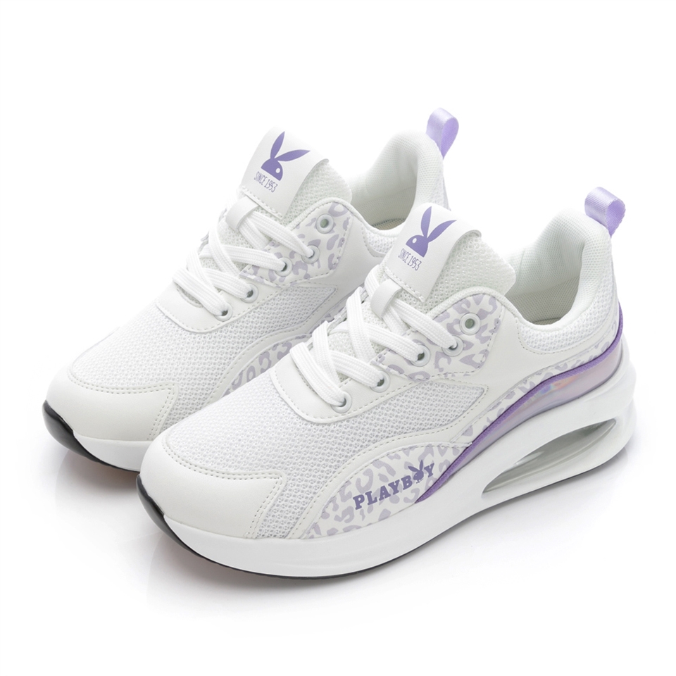 大FUN異彩豹紋閃閃氣墊鞋-白紫