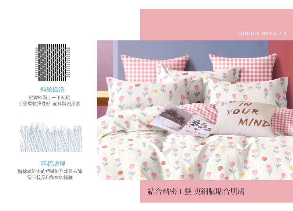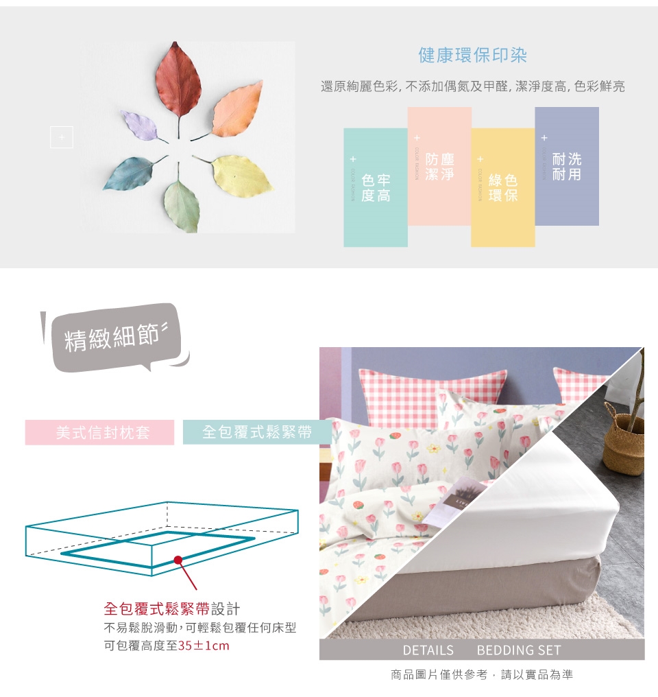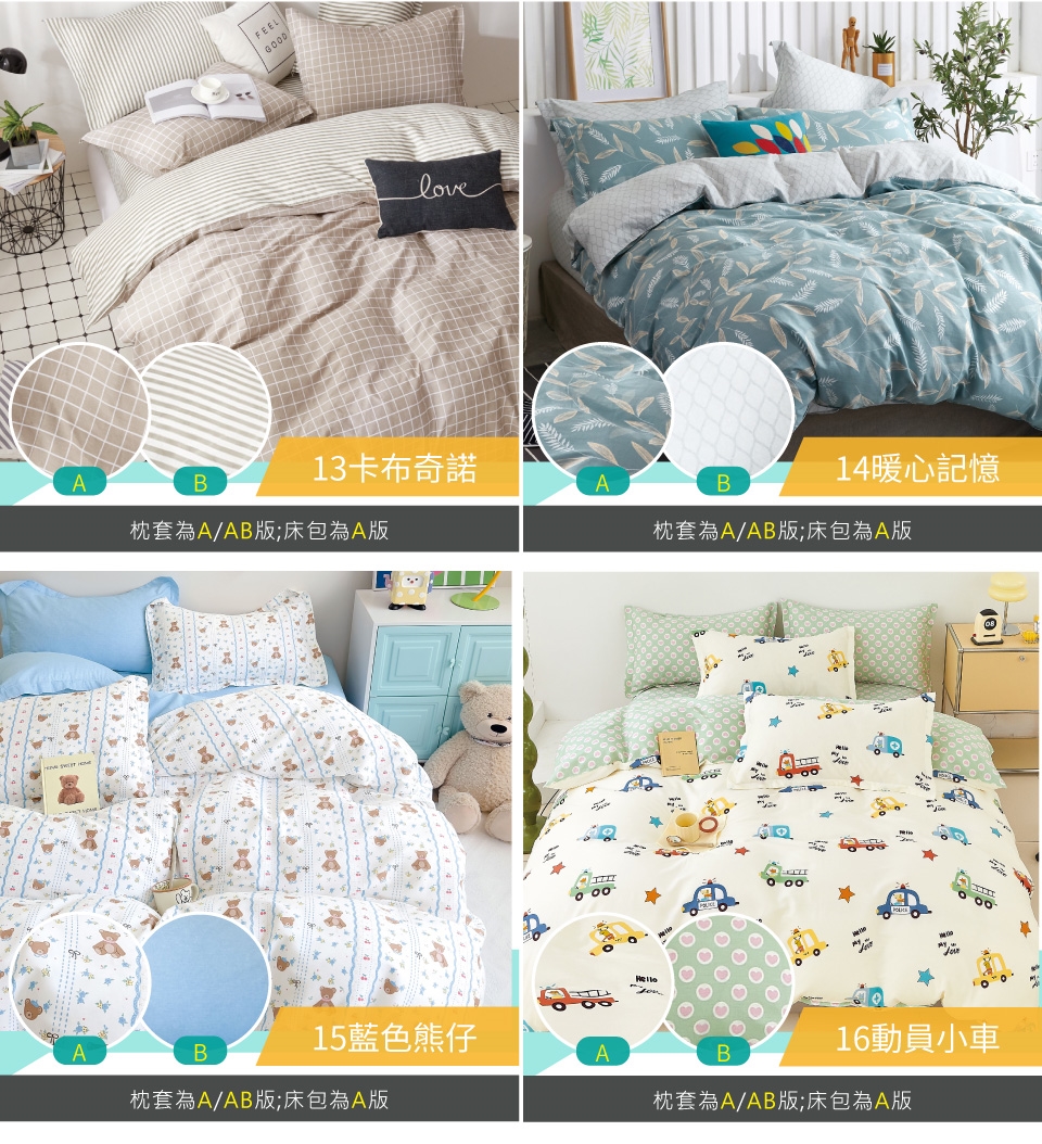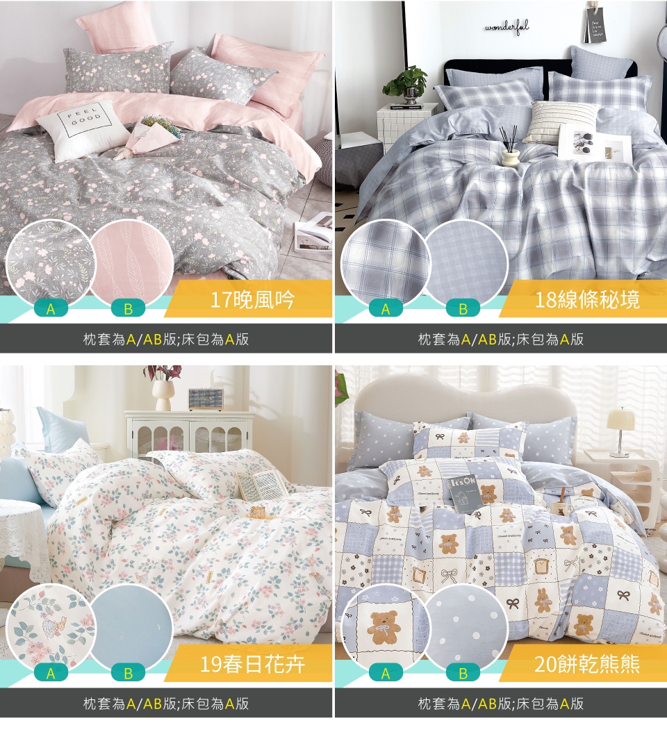 3. 洗滌方式為:先將中性洗滌劑倒入洗衣機的水中,水溫不要超過30℃ ,待洗滌劑完全溶解再放入床包組,注意浸泡時間不要超過20分鐘。