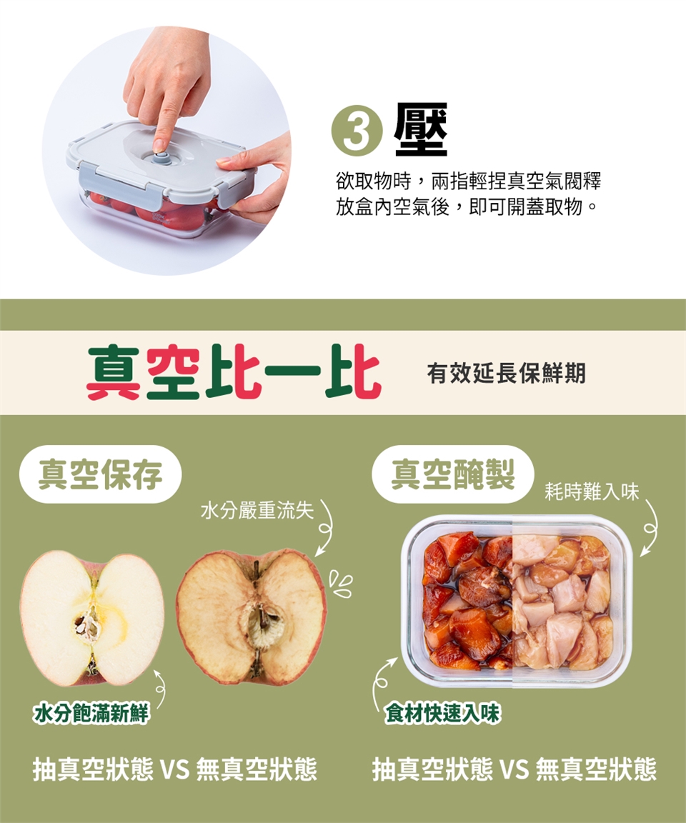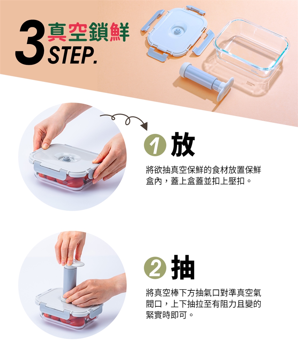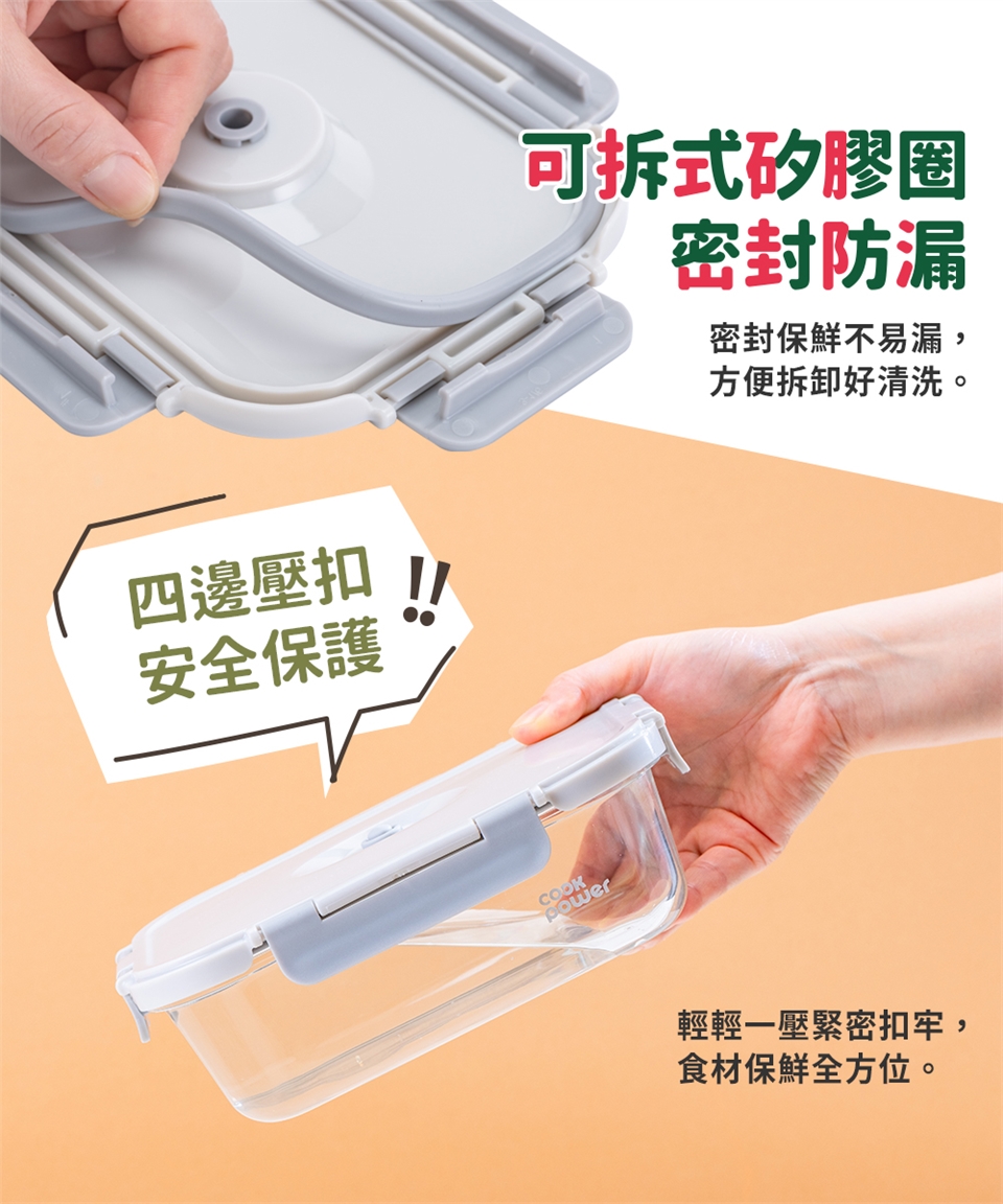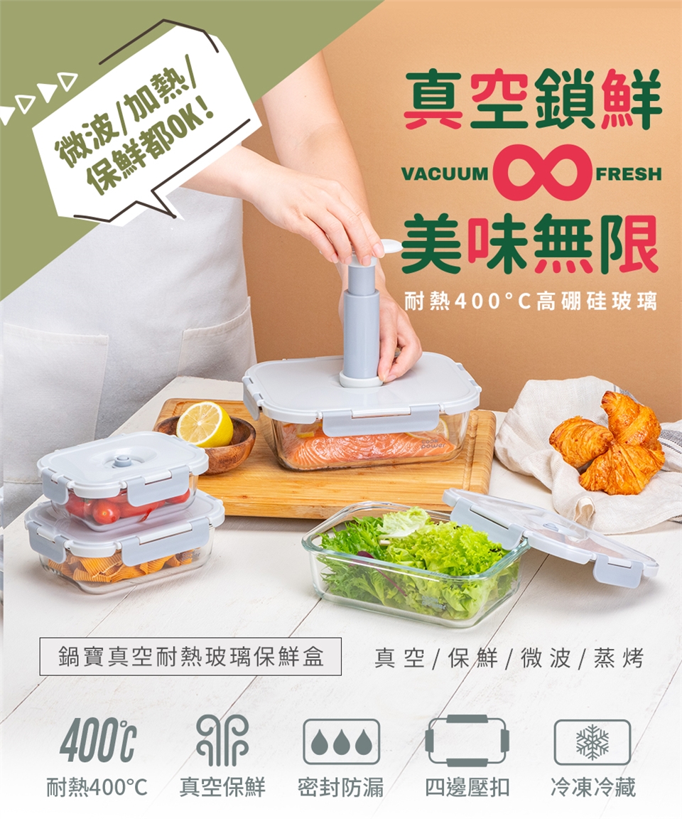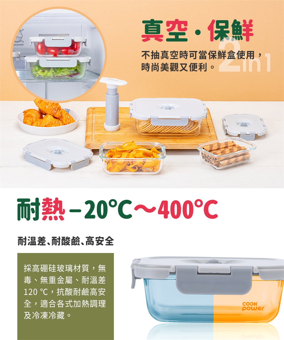 品名:【CookPower鍋寶】鎖氧系列抽真空玻璃保鮮盒-980ML