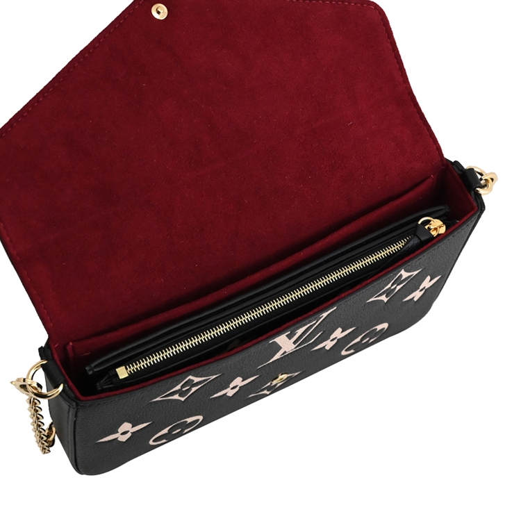 LV 這款優雅的Pochette Felicie 最新款小提包採用一眼可辨的Monogram圖案設計。翻蓋扣式開口,內1貼袋+1活動式卡夾(8卡片夾層+1內袋)+1活動式拉鍊袋供收納,可把您的日常隨身物裝載得井然有序,也可分開單獨使用,可放置大包內,配有可拆式金色鏈條,可調整肩背或斜背或手拿包,設計極富趣味又實用,流滿都會時尚味道,是款時尚又實用的單品配件。