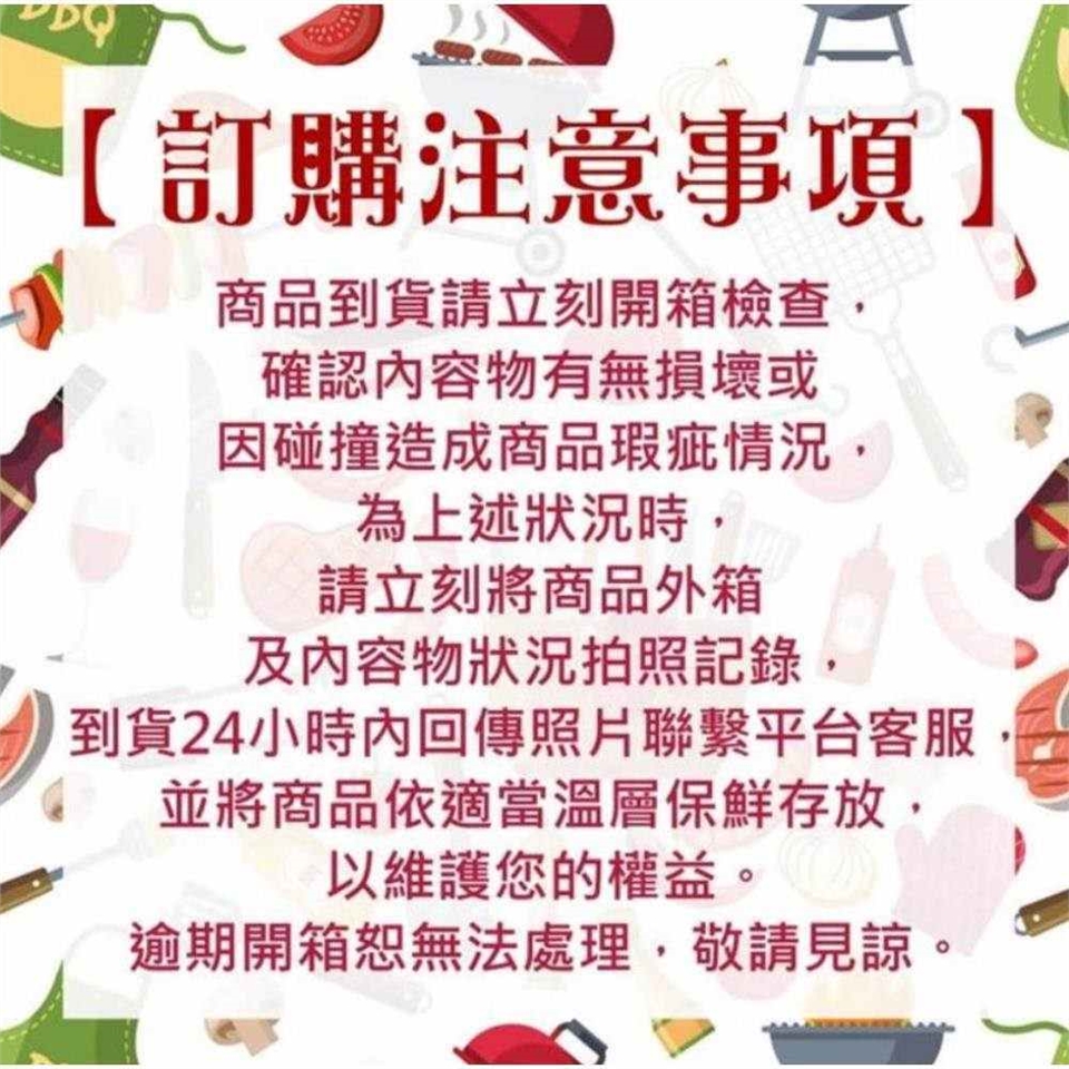 ※ 若部分商品為生鮮鮮凍出貨 (例如:魚類/海鮮..等),提醒您需完全加熱熟後食用