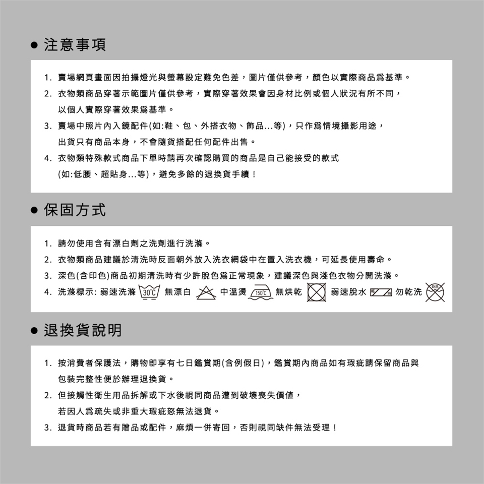 退貨限制:本商品為接觸性衛生用品,商品一經洗滌、使用過恕不接受退換貨。