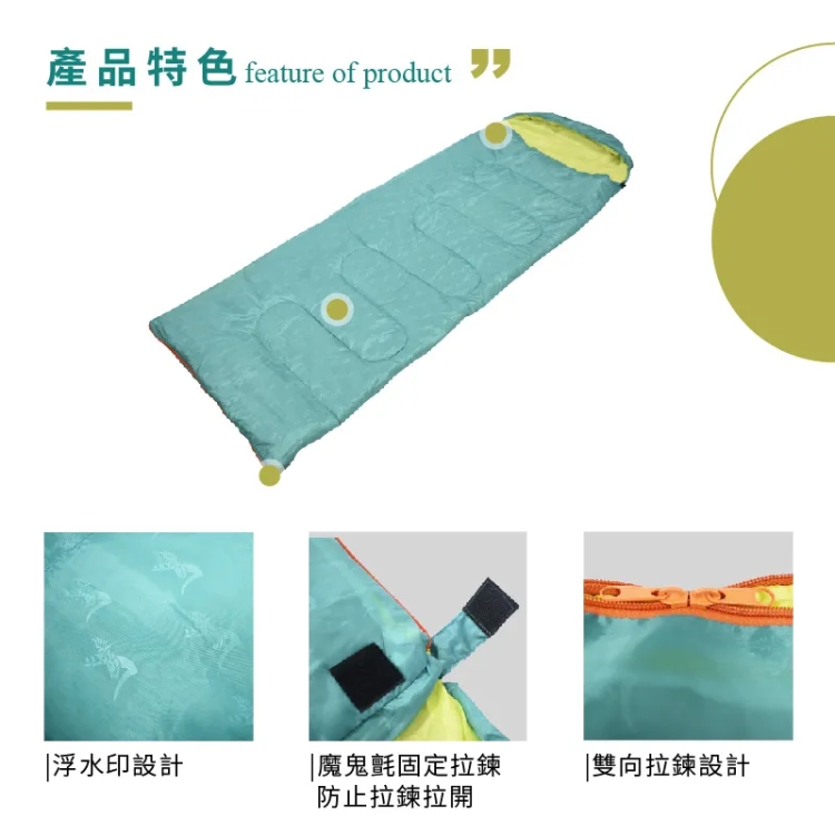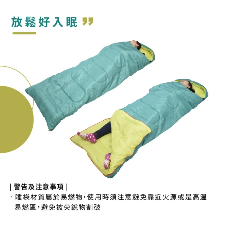 - 睡袋可整件攤開當棉被使用