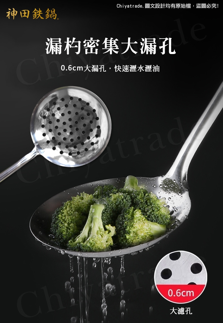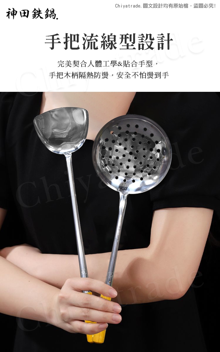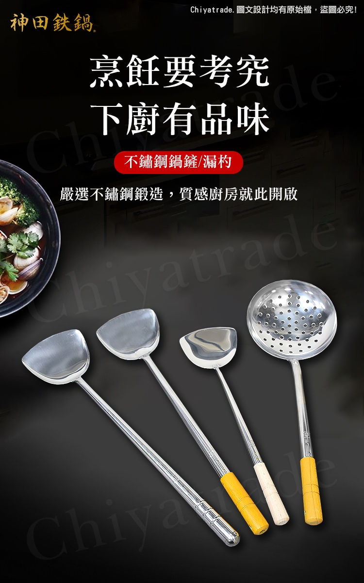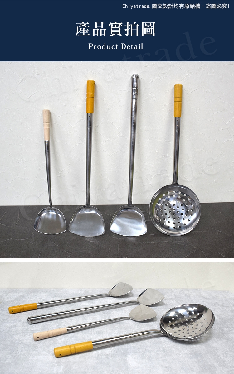 ※使用注意:不鏽鋼鍋鏟系列為鐵鍋、鑄鐵鍋、不鏽鋼鍋專用,不適用於不沾鍋。