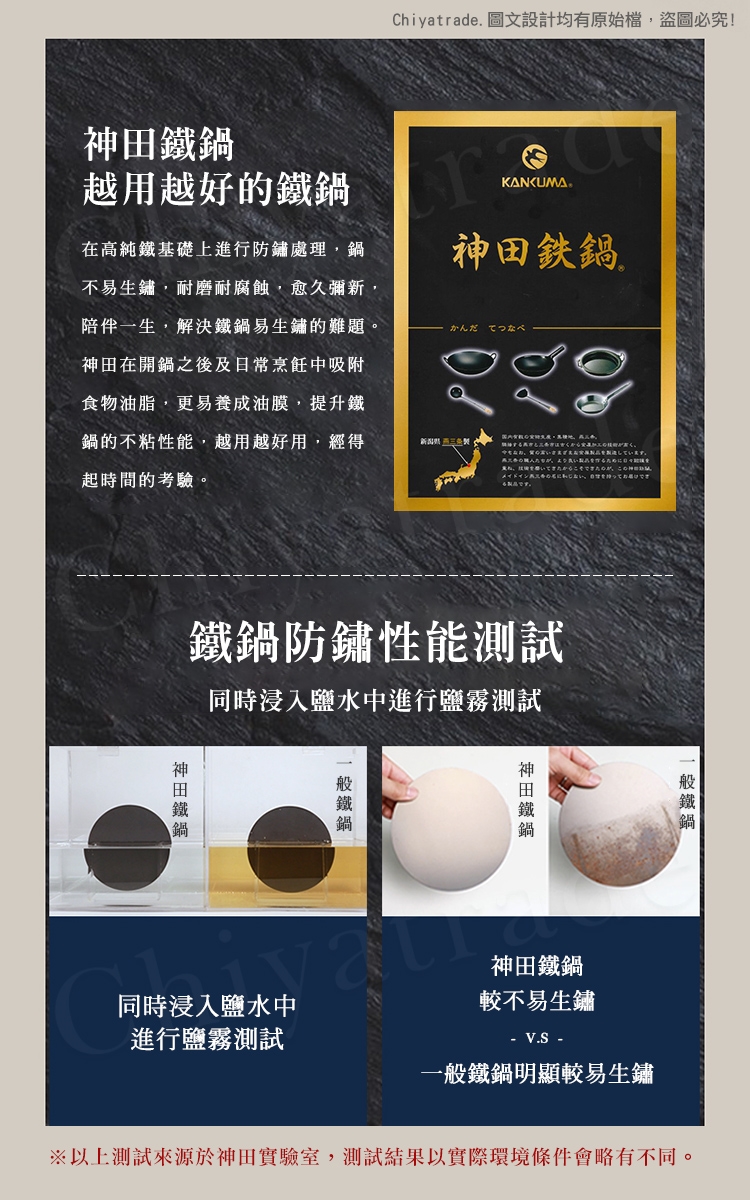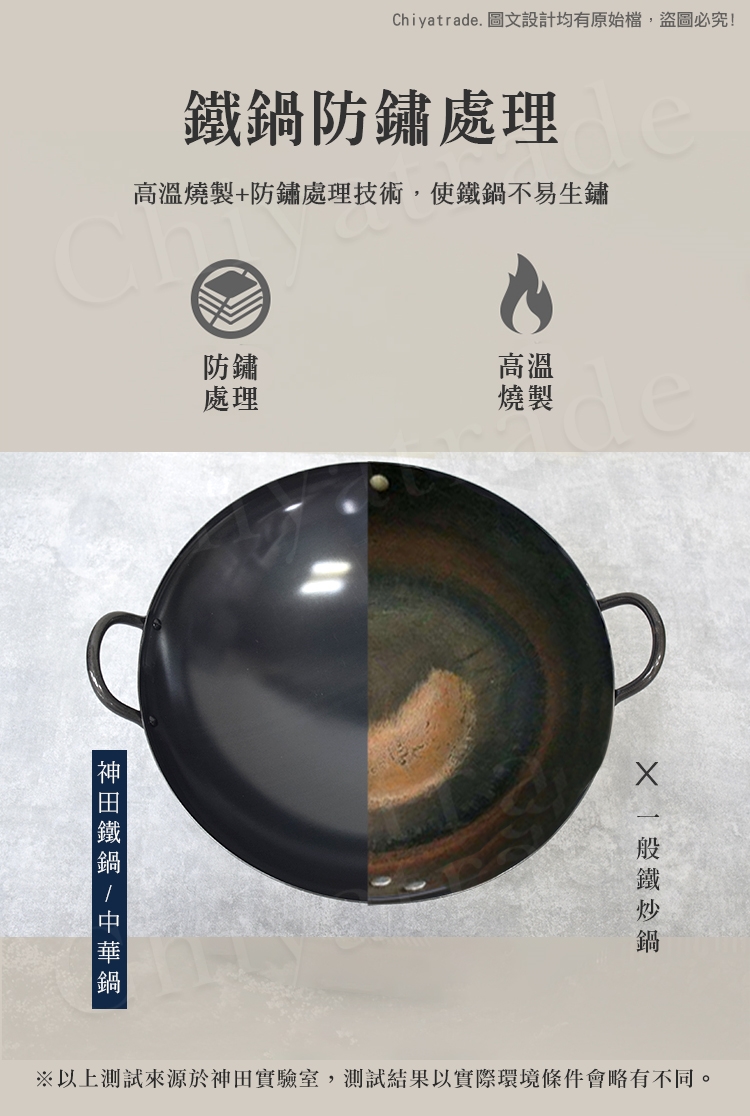 鍋身日本鐵耐鏽處理,不易生鏽(並非不會生鏽請妥善保養方可長壽)