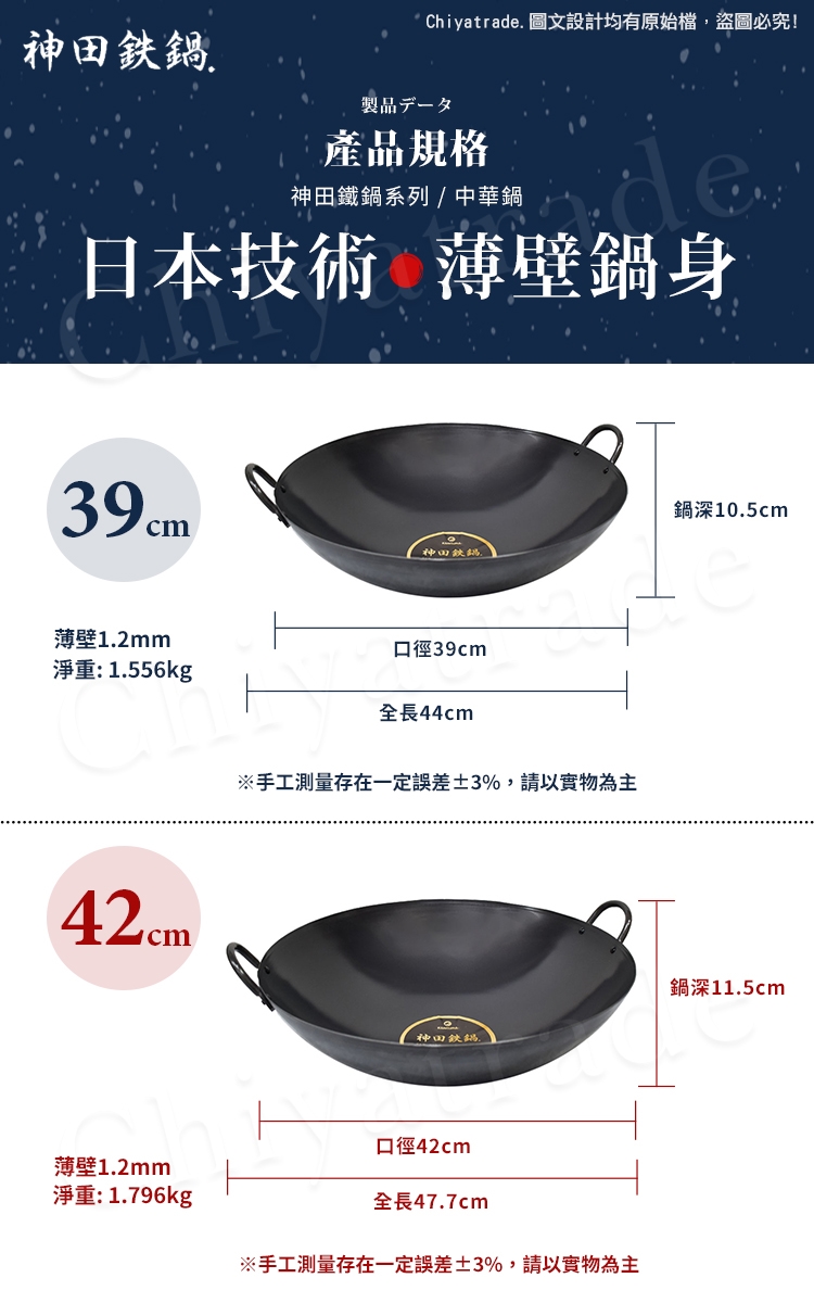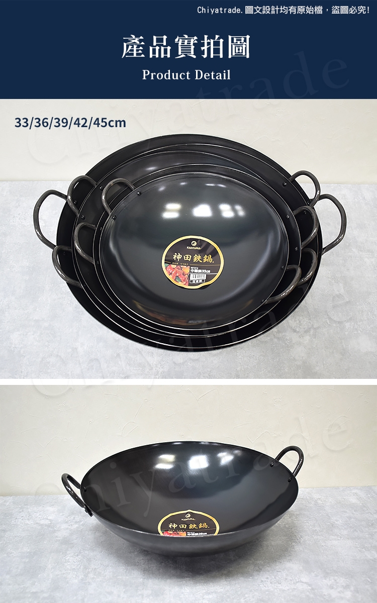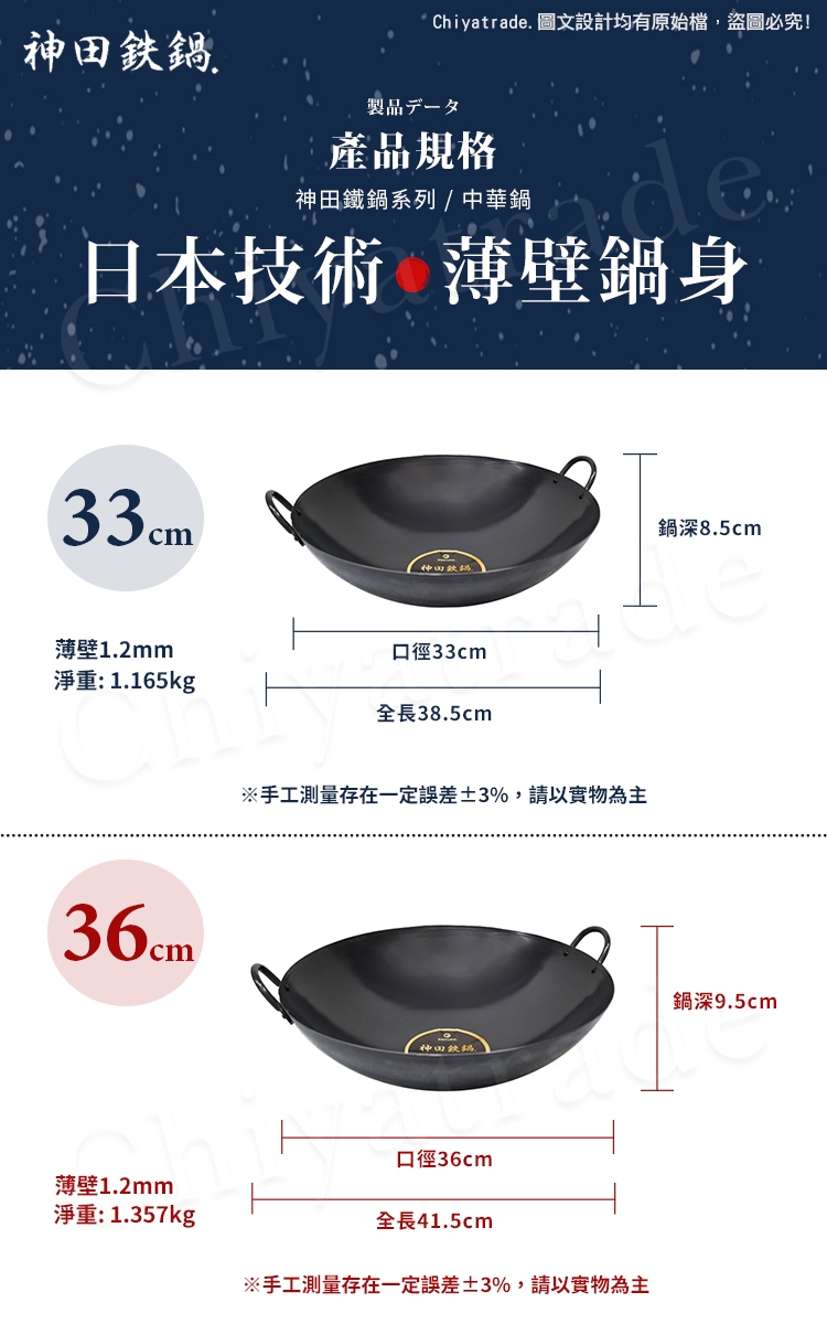 -尺寸:鍋內直徑33cm,總高8.5cm,總長38.5cm,薄壁1.2mm(手量誤差±3%)