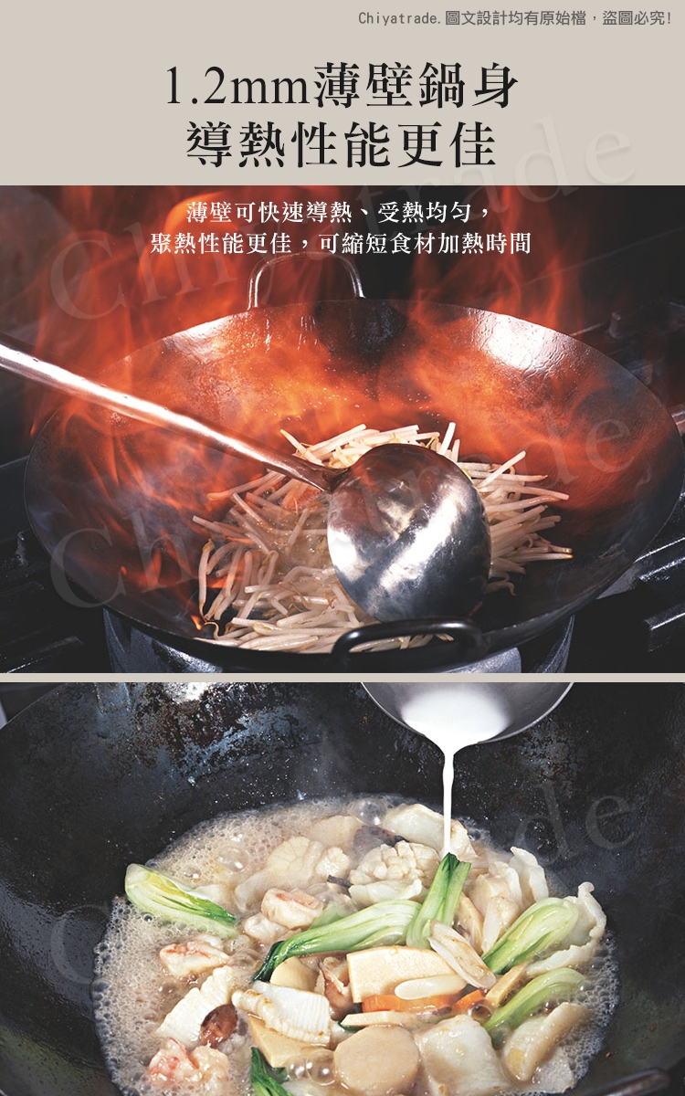 較沒有一般市售鐵鍋的笨重感,顛炒輕鬆,快速出菜