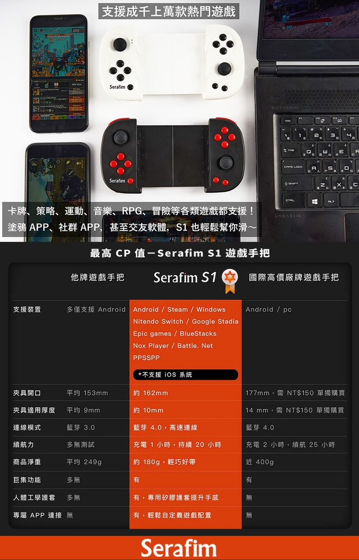 Serafim S1 手遊藍芽智能手把 白色