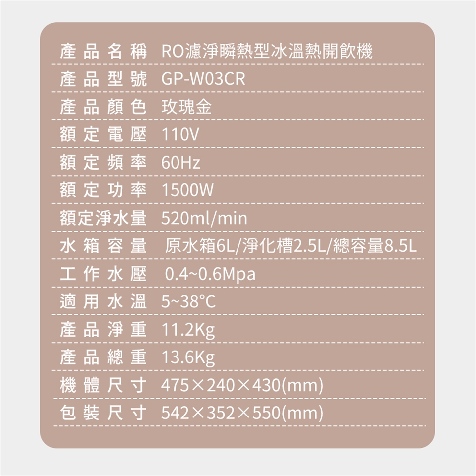 G-PLUS 8.5L RO濾淨瞬熱型冰溫熱開飲機 GP-W03CR