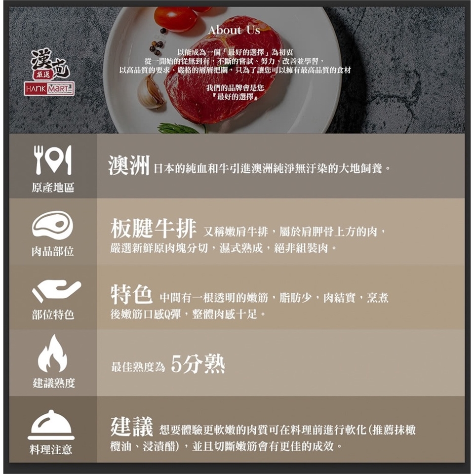 3.本產品以原肉依規格重量裁切,故每片牛排大小、油花、形狀、厚度略有不同。