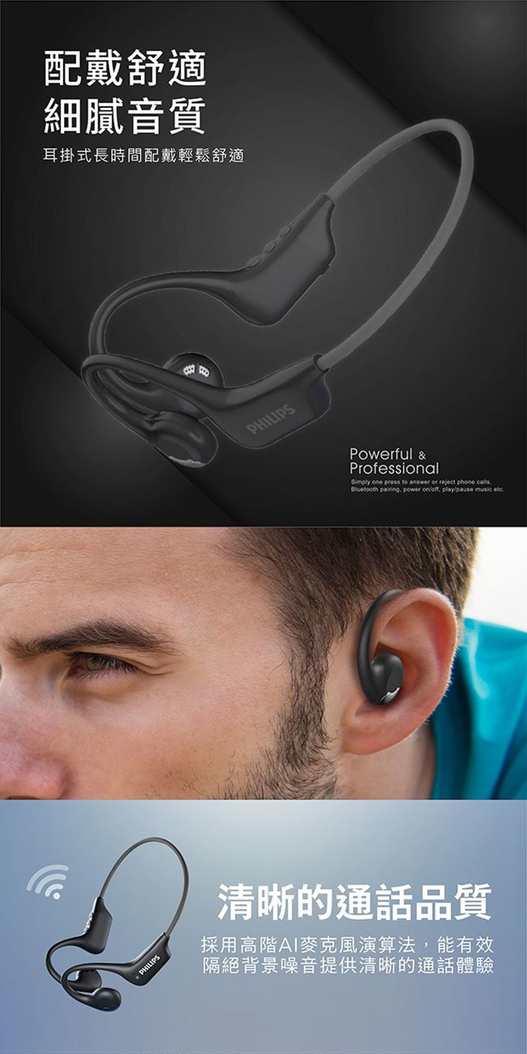 ◆ 開放式耳掛耳機,搭配定向音效設計,透過特殊音室與演算法技術,能降低漏音與震動,保留音質細膩度,配戴更舒適