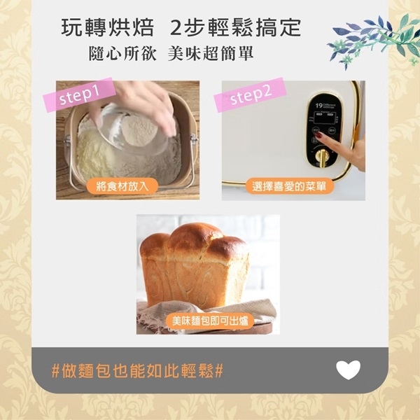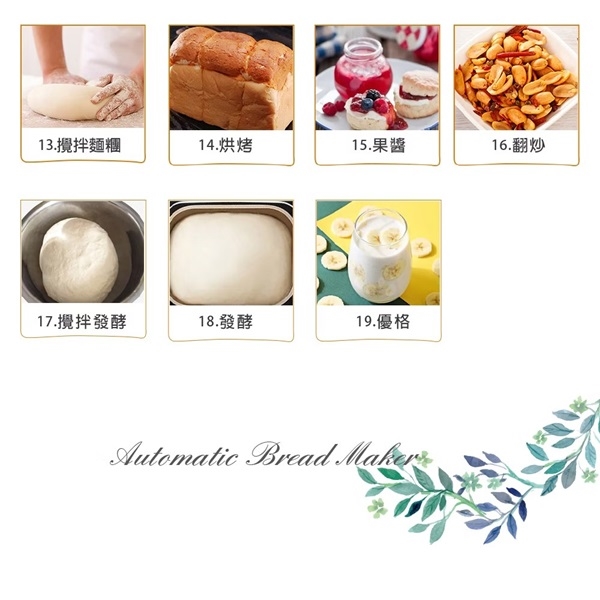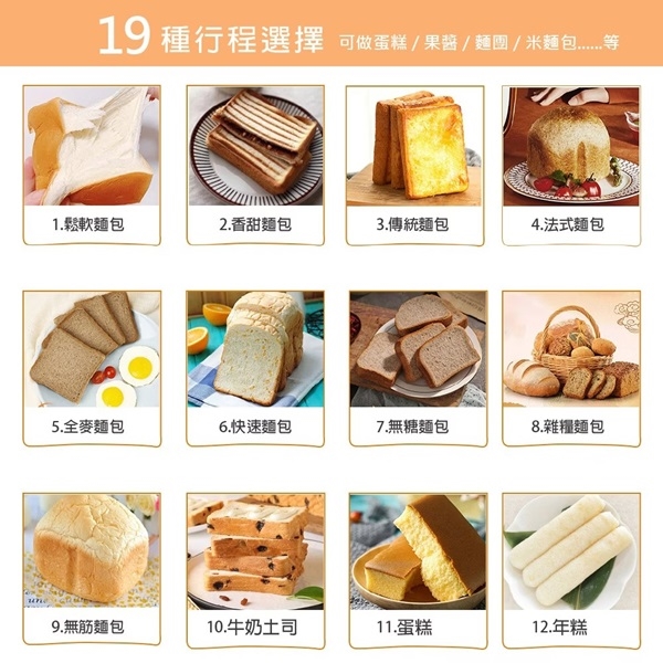 19種麵包行程設定,可做蛋糕,果醬,麵團