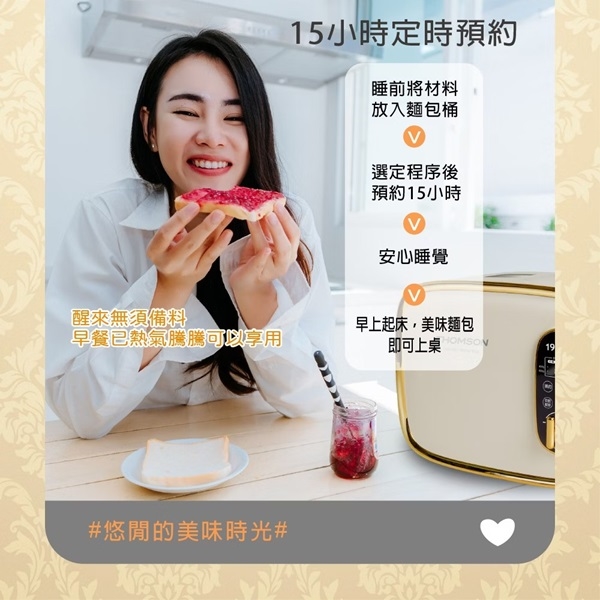 15小時預約設定功能,無需等待,一早就有麵包享用