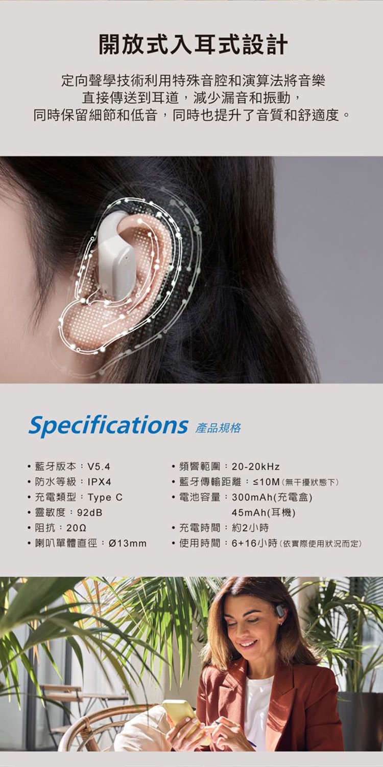 ◆ 耳掛設計,配戴無壓力,使用時可感知周圍環境音。