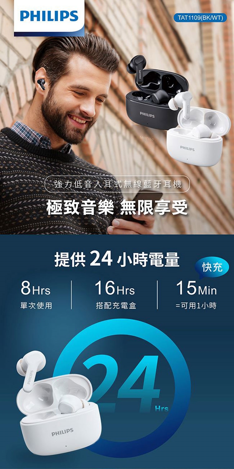 ★ 搭配充電盒即享達 24 小時的播放時間