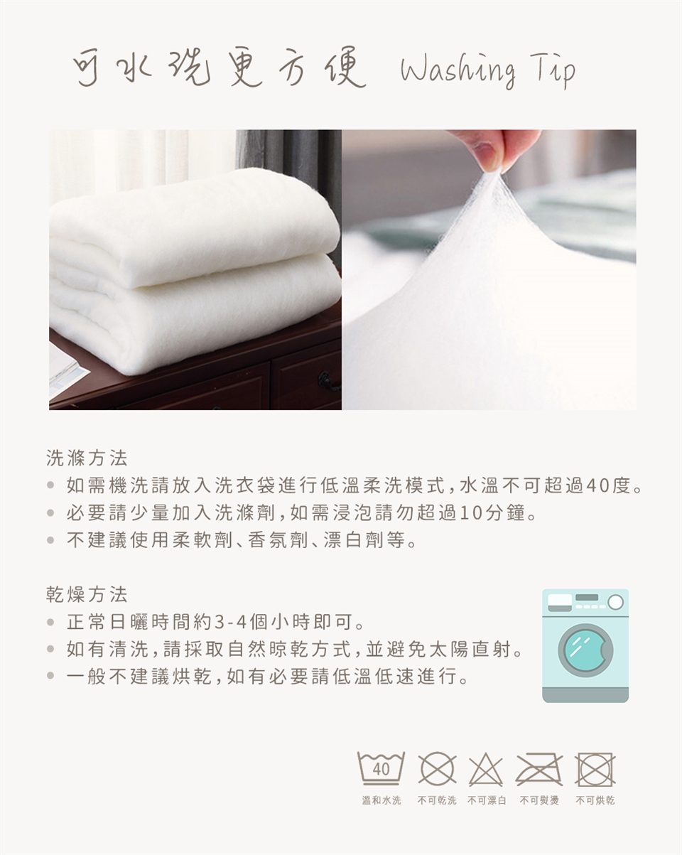 ◎ 整張纖維棉填充 + 精緻绗縫