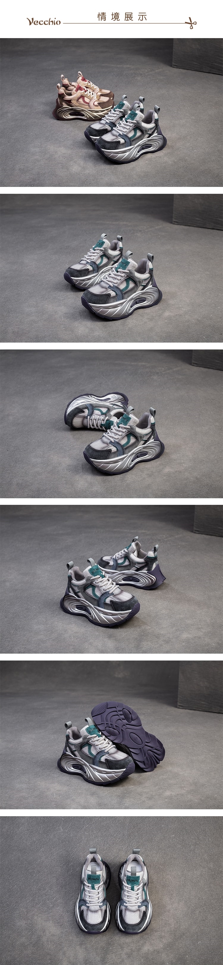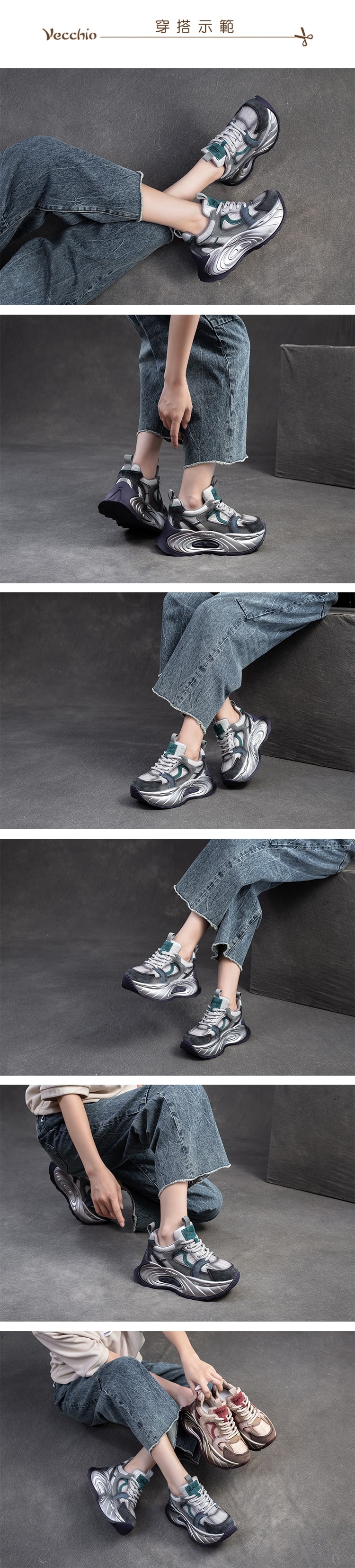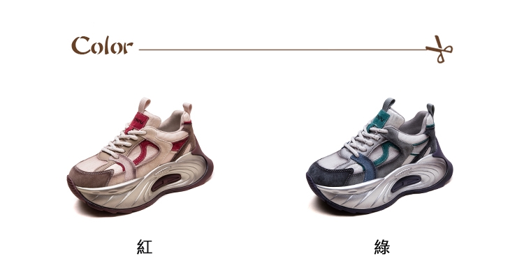 【VECCHIO】真皮拼接撞色厚底老爹鞋/真皮復古異材質拼接撞色厚底老爹鞋 休閒鞋 女鞋 綠