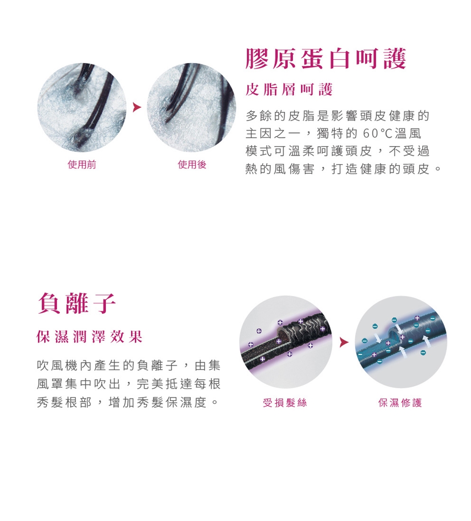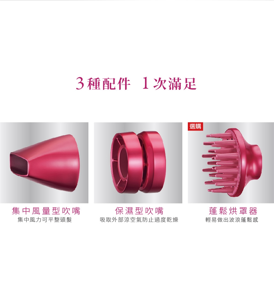 附屬配件:保濕風罩/集中風罩/膠原蛋白盒 ;蓬鬆式烘罩 (選配)