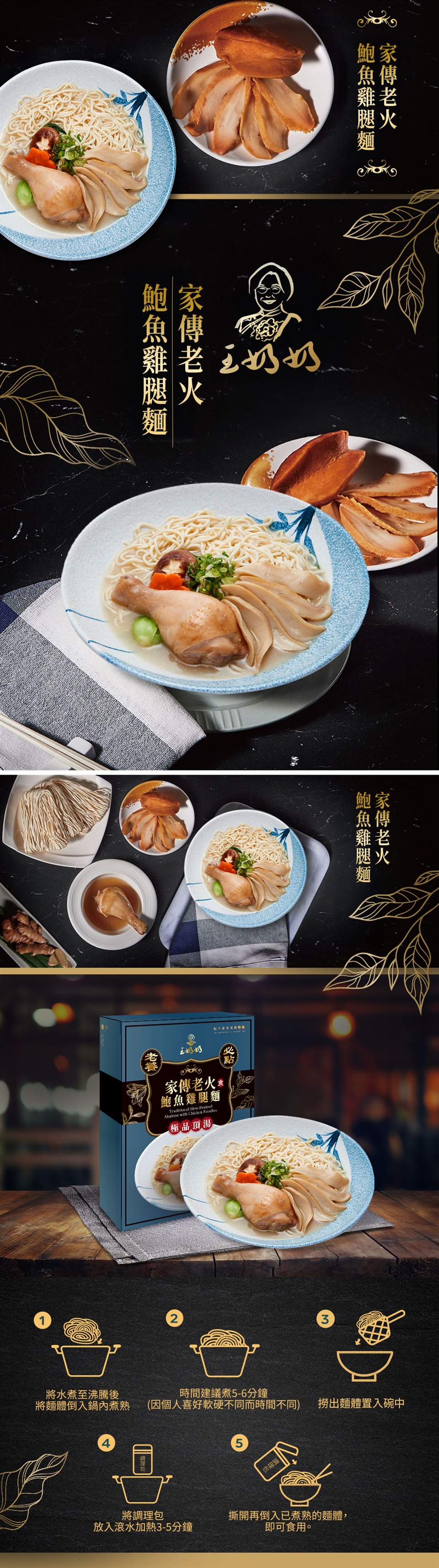 王奶奶私房菜老火家傳鮑魚雞腿麵(570g/盒)
