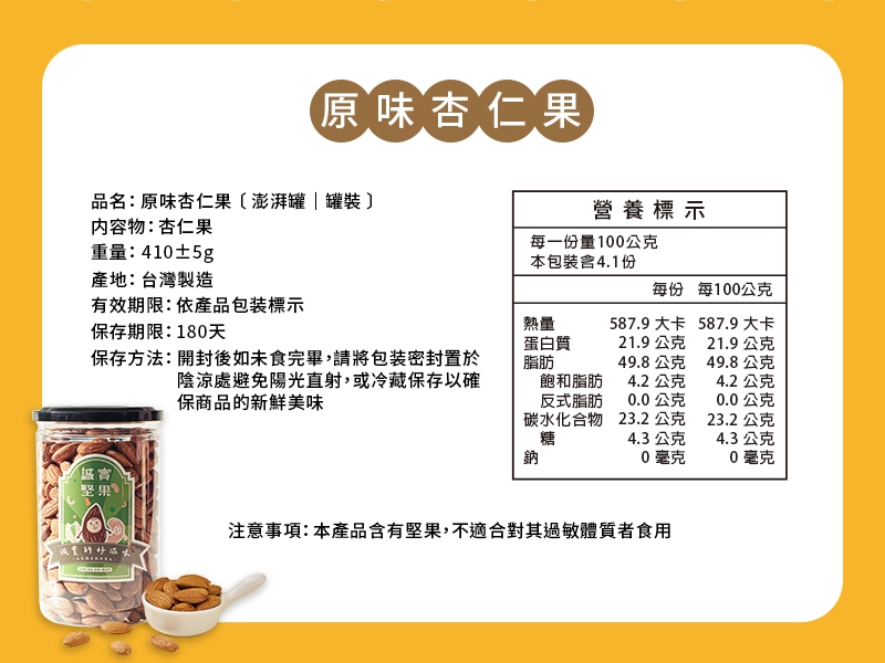 本產品含有堅果,不適合對其過敏體質者食用。