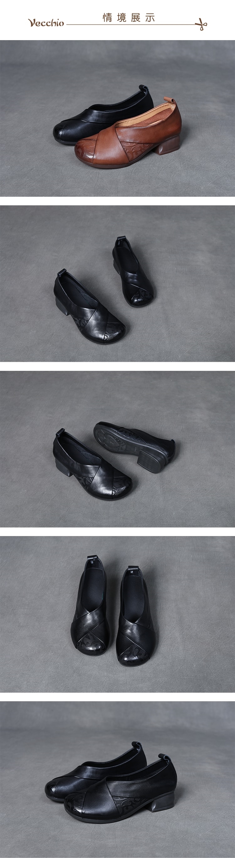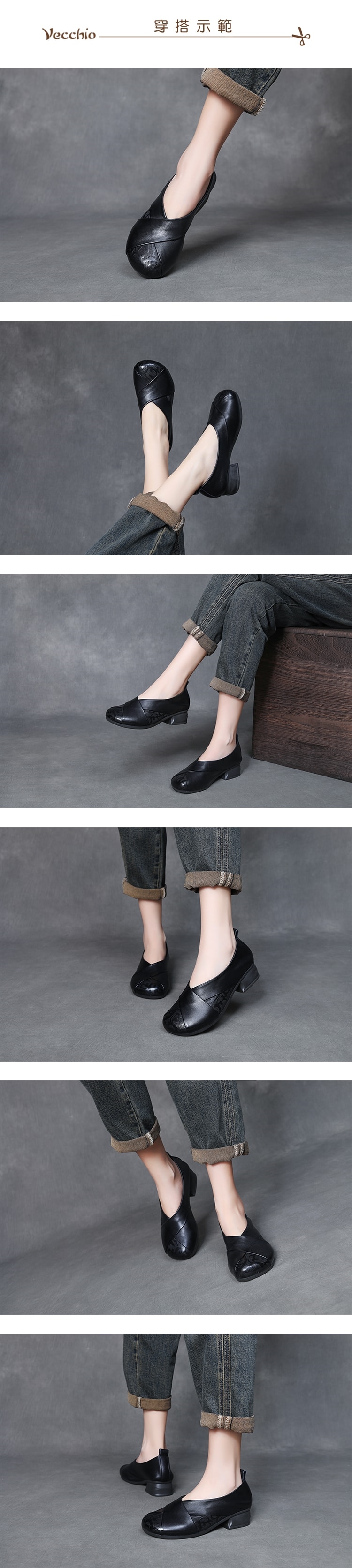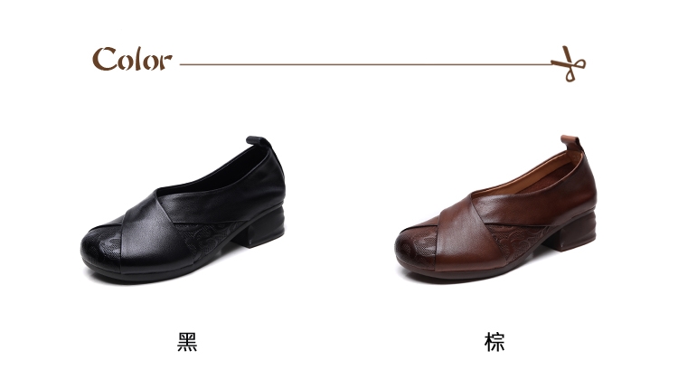 【VECCHIO】全真皮皮雕交叉粗跟鞋/全真皮頭層牛皮皮雕交叉帶設計小圓頭粗跟鞋 女鞋 黑