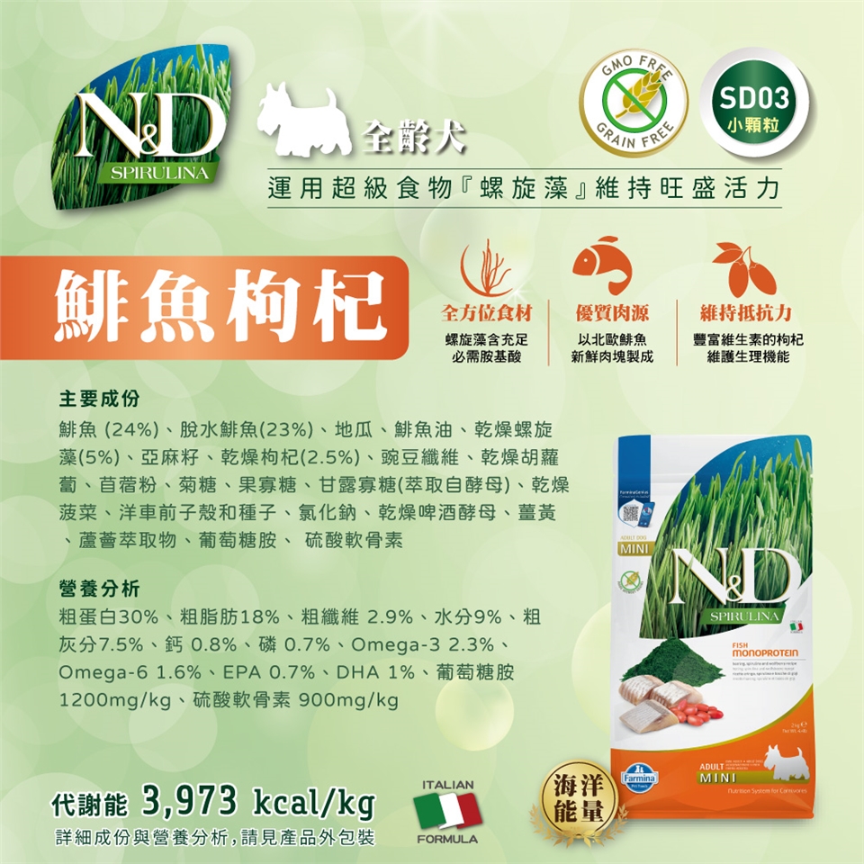 初次使用法米納全系列天然糧時,請先與原飼料混合食用,以至少7日逐漸轉換,以免寵物腸胃不適應。