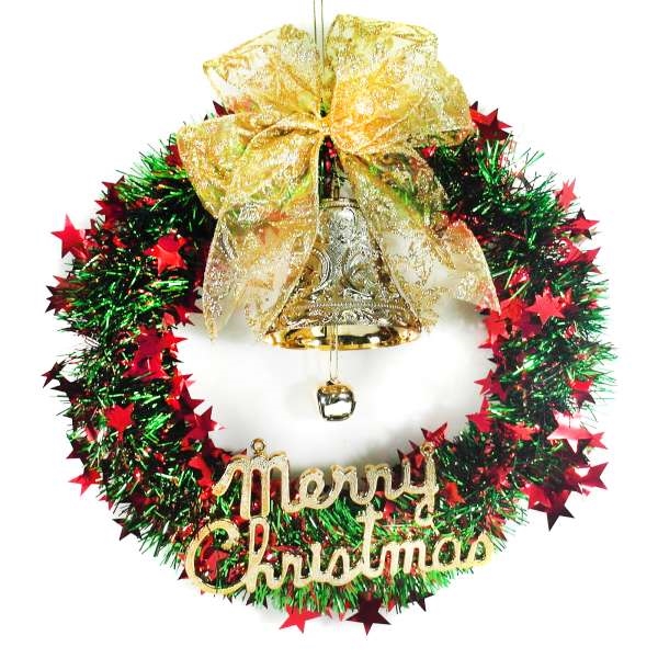 YS-MTW14004 14吋紅綠金蔥聖誕星星花圈