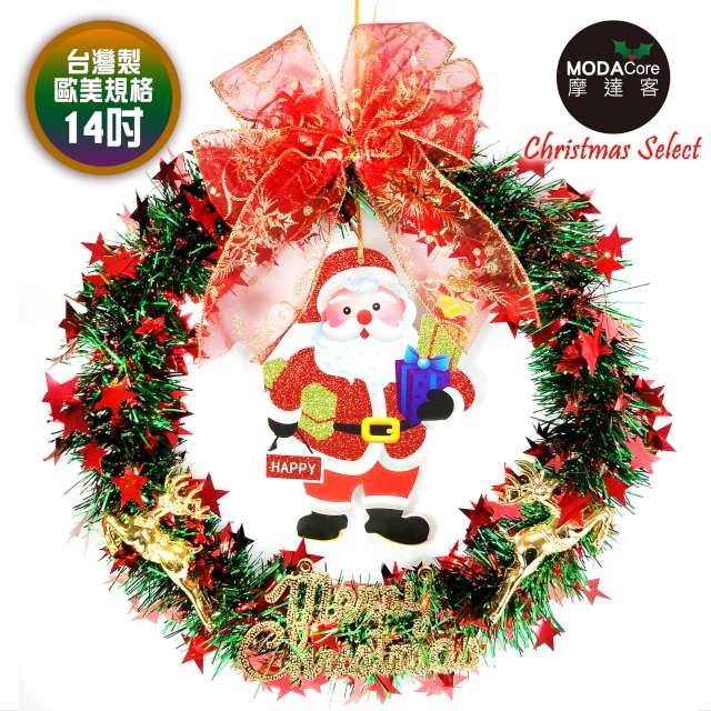摩達客耶誕-14吋金蔥聖誕花圈系列-多色可選