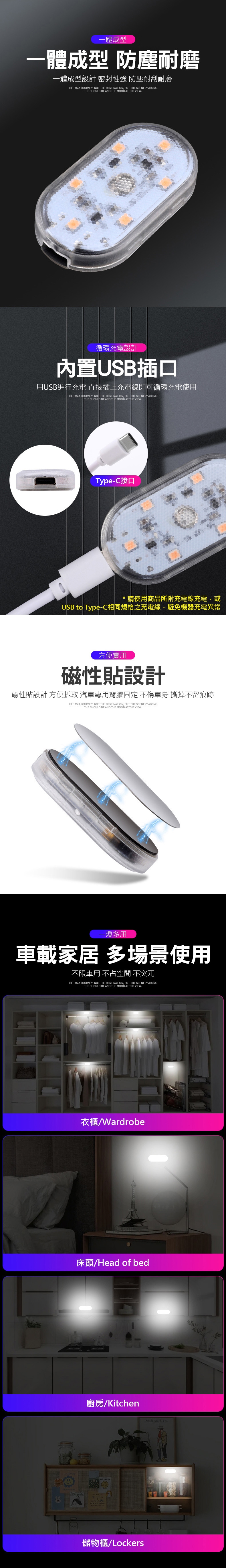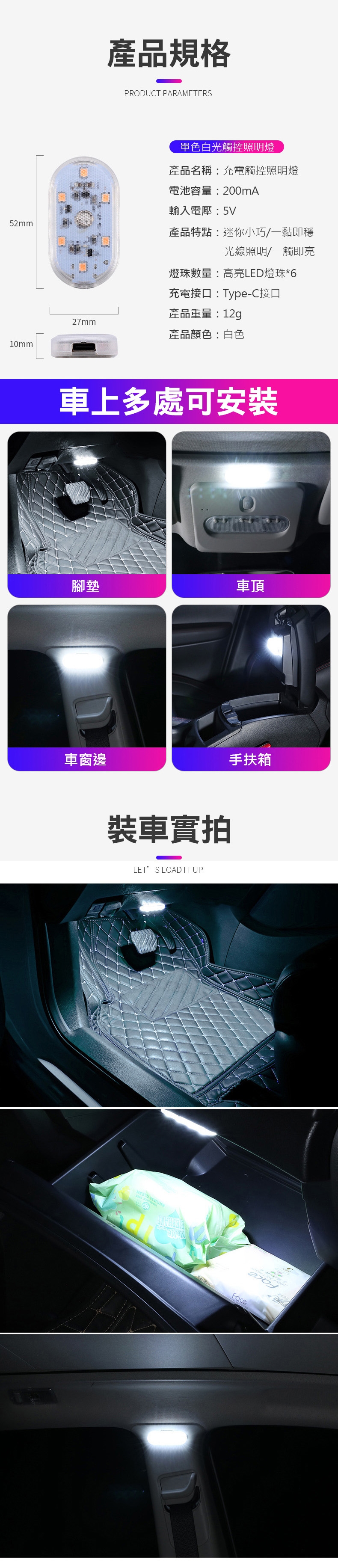 腳墊/扶手箱/車頂棚/後車箱輔助照明,方便夜間查找物品