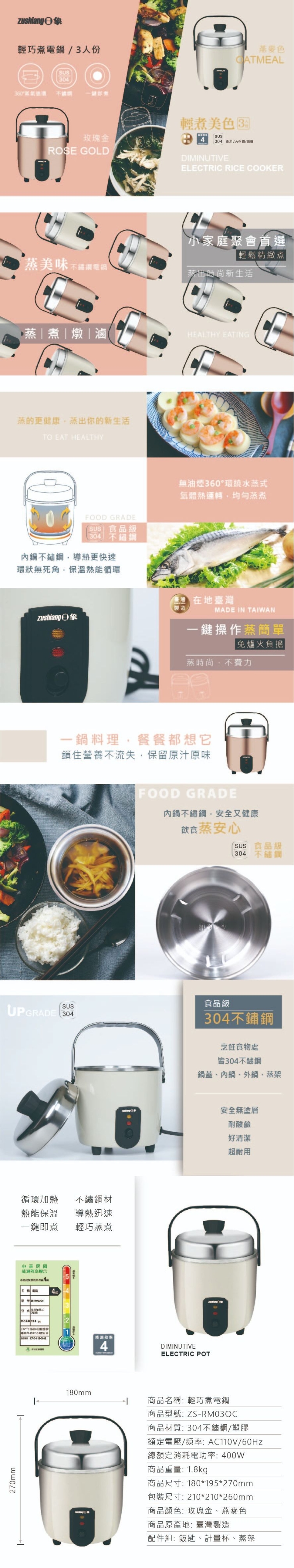 ZUSHIANG日象 輕巧煮3人份不鏽鋼電鍋 ZS-RM03OC