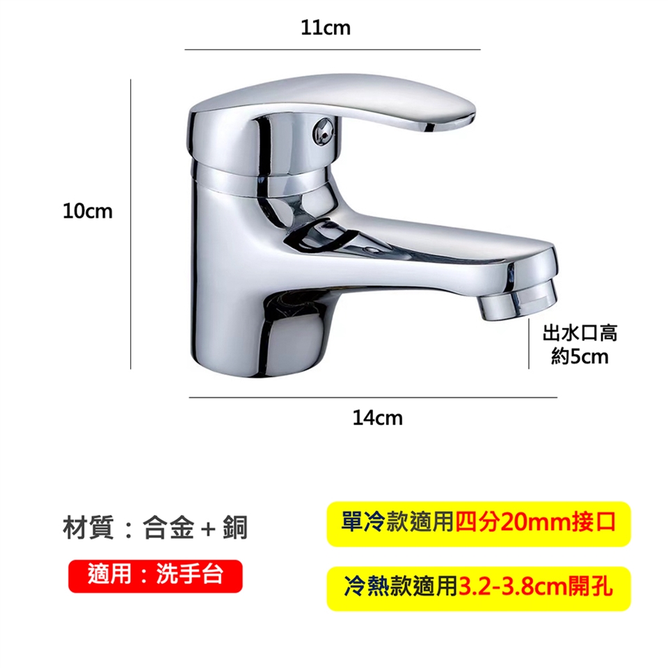 冷熱款:面盆 3.2 - 3.8 公分的圓孔可安裝