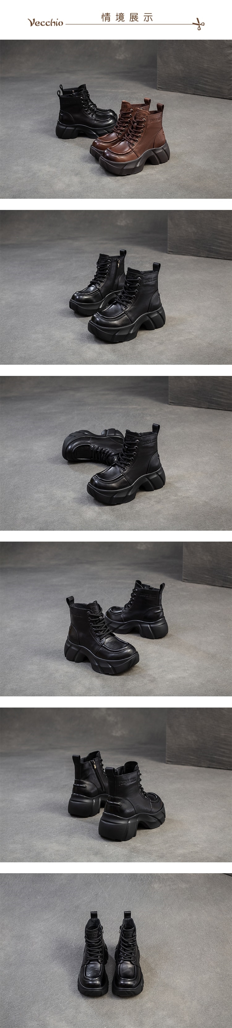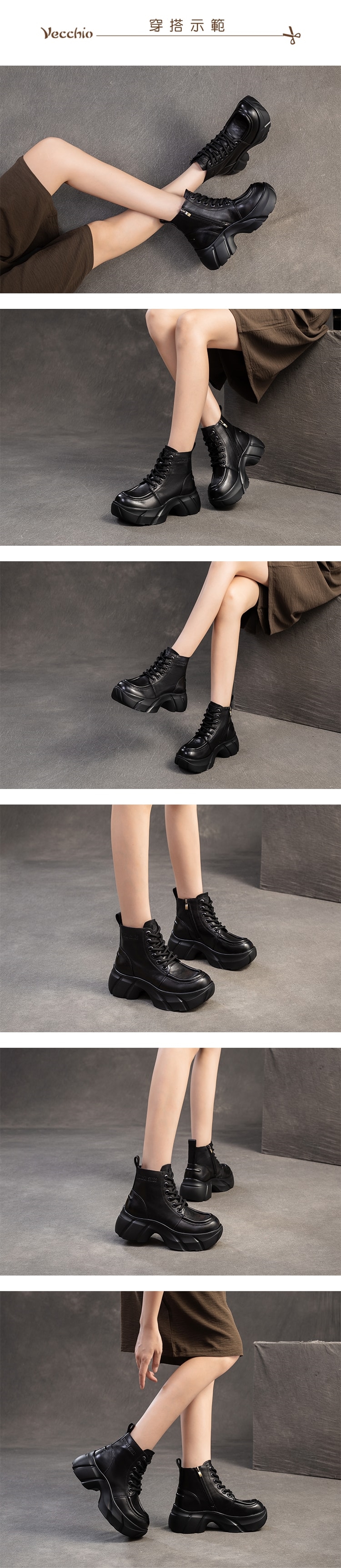 【VECCHIO】全真皮滾邊厚底馬丁靴/全真皮頭層牛皮復古立體車線滾邊繫帶厚底馬丁靴 女鞋 黑