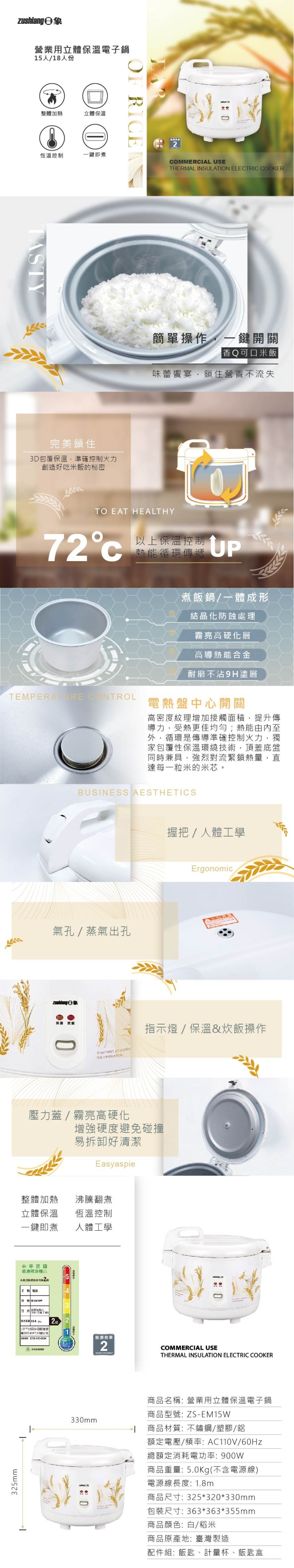 ZUSHIANG日象 15人立體保溫電子鍋 ZS-EM15W