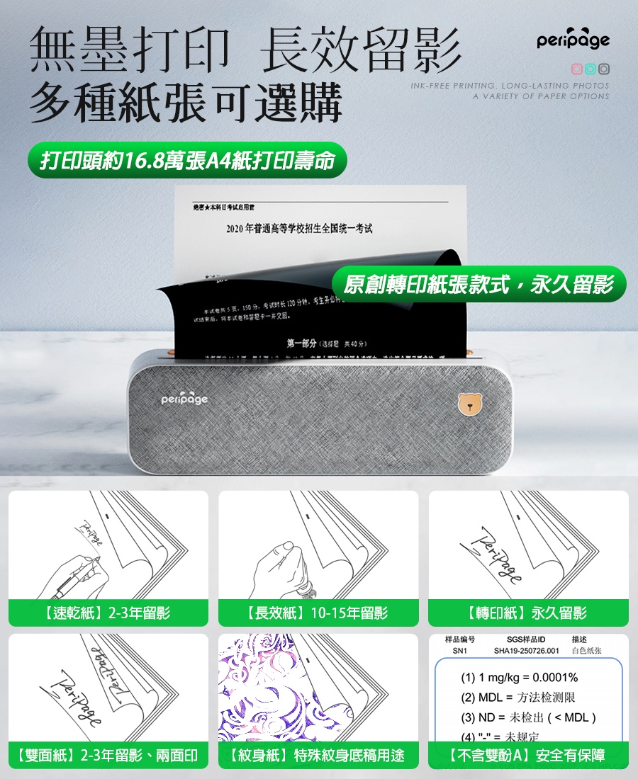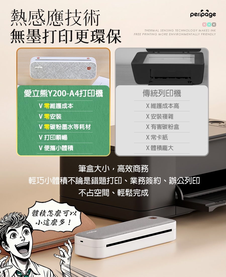 完全不需要墨水或碳粉基本上是沒有任何耗材,所以一定要用熱感應紙才能打印喔!