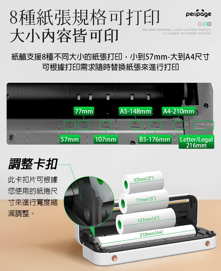 🚀 8種紙捲寬度 57mm / 77mm / 107mm / A5 / B5 / A4 / Letter / Legal