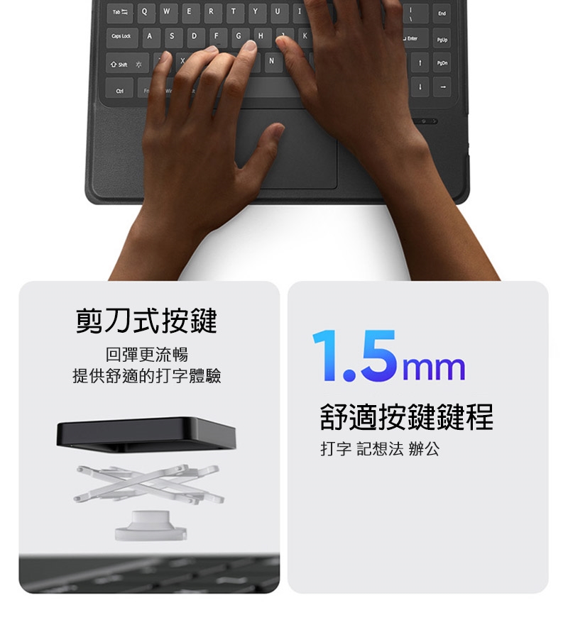 .剪刀式結構按鍵,回彈更流暢,1.5mm 鍵程,手感絕佳