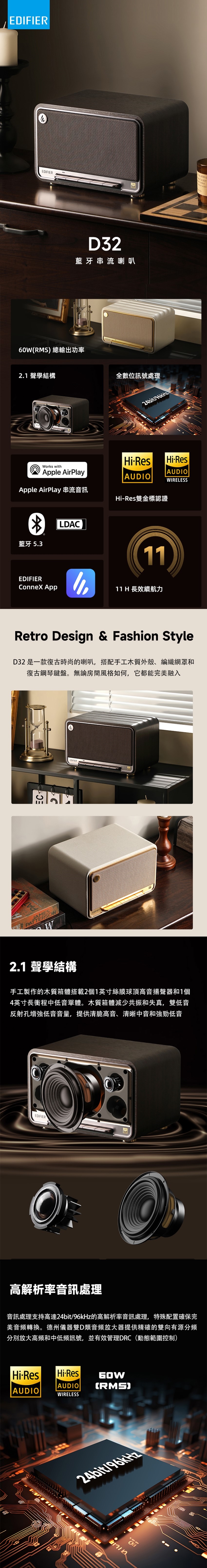 EDIFIER 漫步者 D32 藍牙串流喇叭