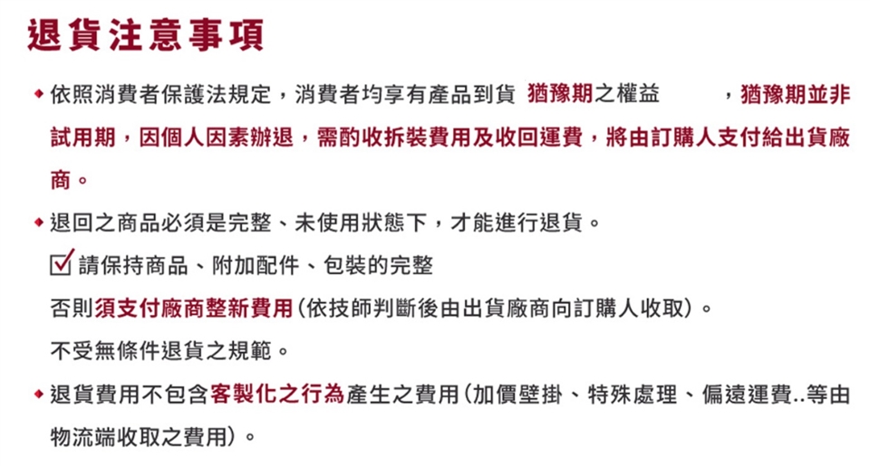 ※商品一經安裝 非機器新品不良問題 退貨需支付整新費用